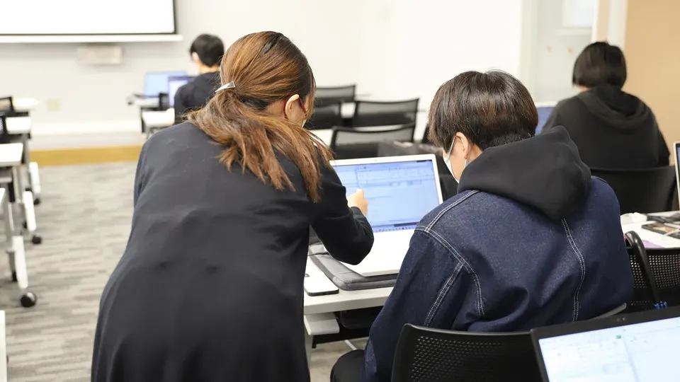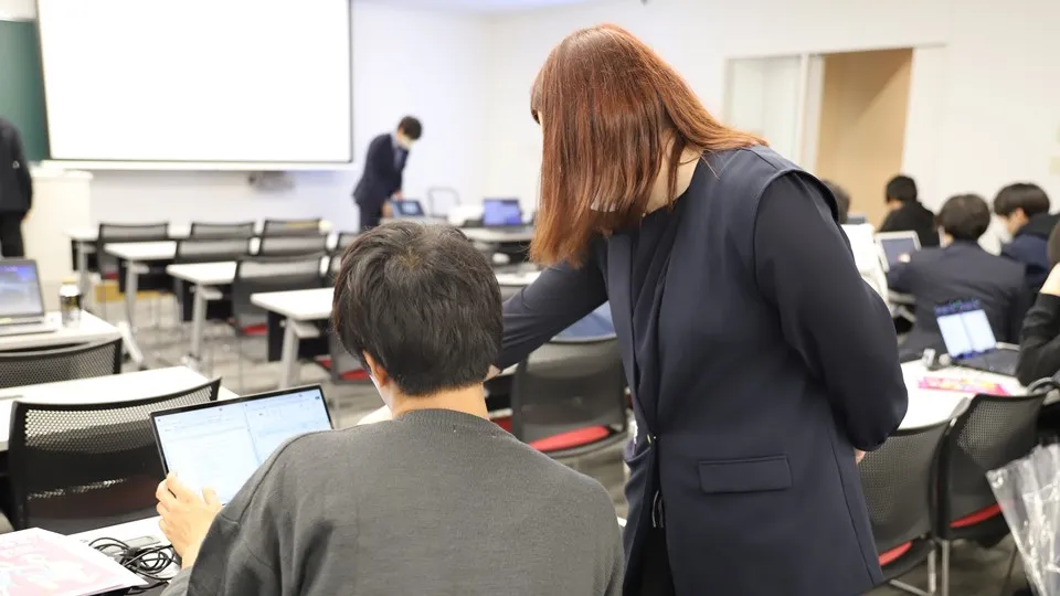 レビューも実際のシステム開発現場で必ず行われる作業で、講義では各グループに講師がつき各自の品質管理書類の改善点・不足内容をチームで共有するという実践的な作業を経験しました。