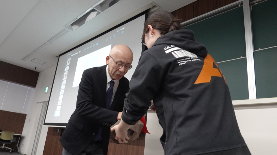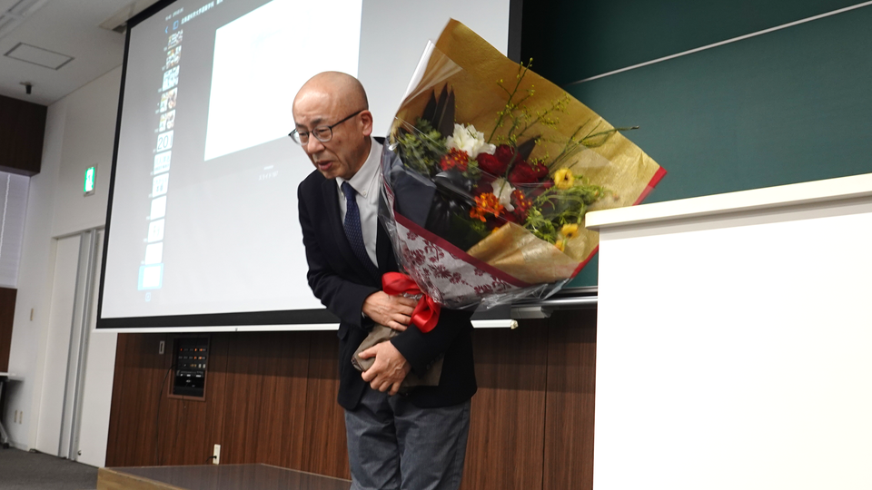 講義後には、学生から川人先生へ花束が贈呈されました。