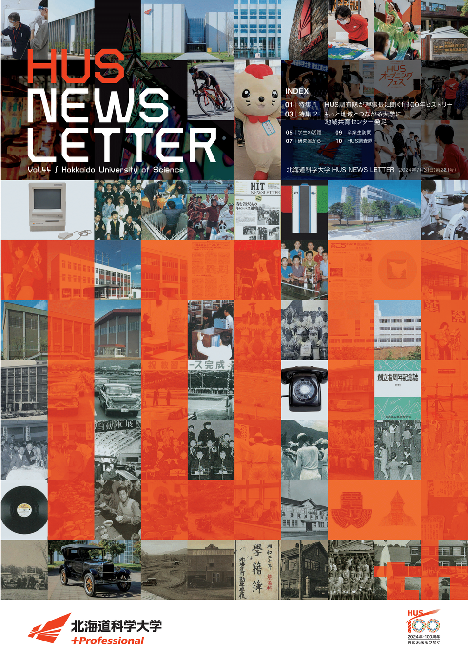 今回の巻頭特集は、今年で学校法人北海道科学大学100周年ということで、HUS調査隊が理事長に法人創立から100年の歴史をインタビューしました。これまでの法人と手稲の歩みやこれから歩んでいく未来について理事長から語られました。特集2では、今年から本学に新たに誕生した「地域共育センター」の紹介、本学が目指す地域連携の未来について紹介しています。