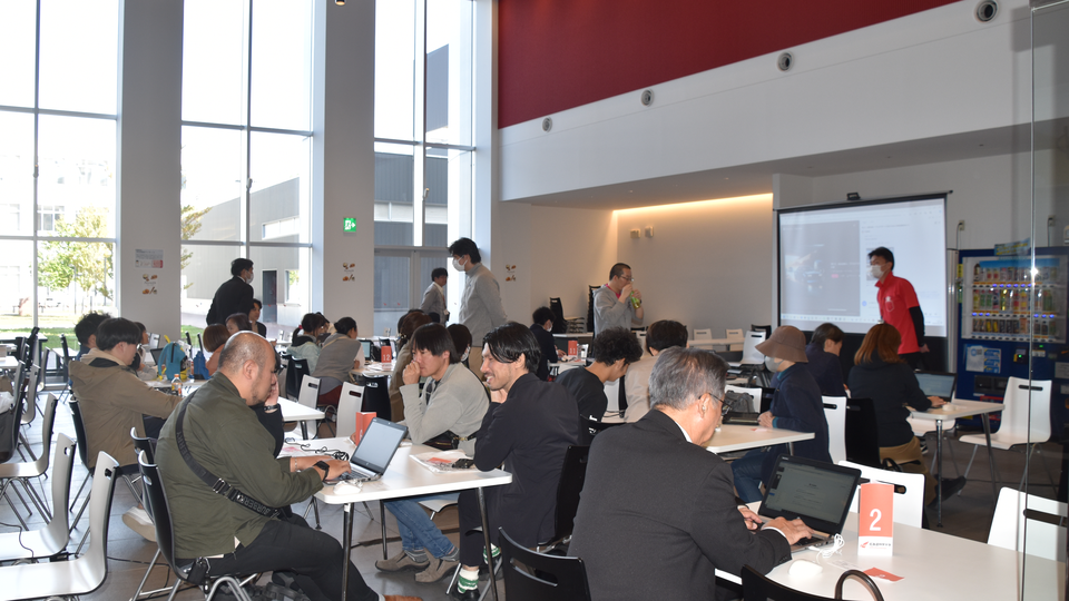 クロストーク後、E棟1階食堂へ移動し、2~4名ずつのグループにわかれてAIを活用したワークショップを実施しました。