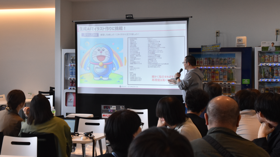 まず始めに生成AIの操作に慣れていただくために、グループごとにMicrosoft EdgeのCopilotを使って、既存のキャラクターを生成させるワークショップを行いました。このワークショップのルールとしてキャラクター名を明記せずにAI に描画の指示を行うこととし、いかに実際のキャラクターと近いイラストを生成できるかという体験を行いました。