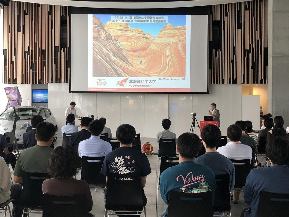HUS学術研究交流会は、研究者同士の交流の場として開催4年目となり、学内の共同研究への繋がりも生まれています。今回も、さまざまな領域の研究成果を共有し、幅広い分野の方々と演者との間で有意義な質疑応答が展開され