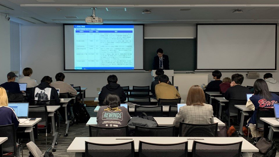 10月12日(木)、人間社会学科の「現代社会論」の授業において、北洋銀行 経営企画部広報室兼サステナビリティ推進室 調査役の対馬氏をお招きし、 「日々のニュースと金融の関わり」というテーマで講義をしていただきました。