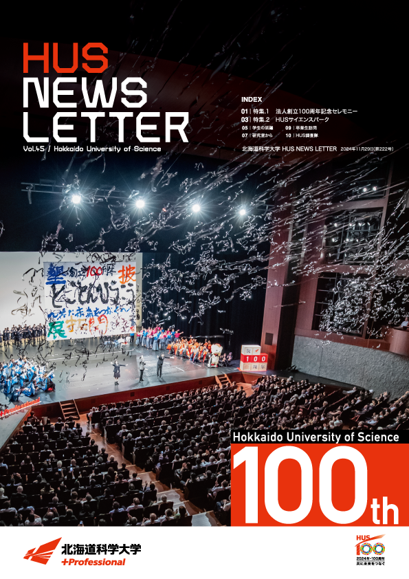今回の巻頭特集は、8月10日(土)に開催した「法人創立100周年記念セレモニー」の様子をレポート記事にしました。特集2では、7月に開催した「HUSサイエンスパーク」で開設したワークショップのブース紹介や、主催である研究推進社会実装センターの丁野センター長へのインタビューを通じて、このイベントへの想いが綴られています。