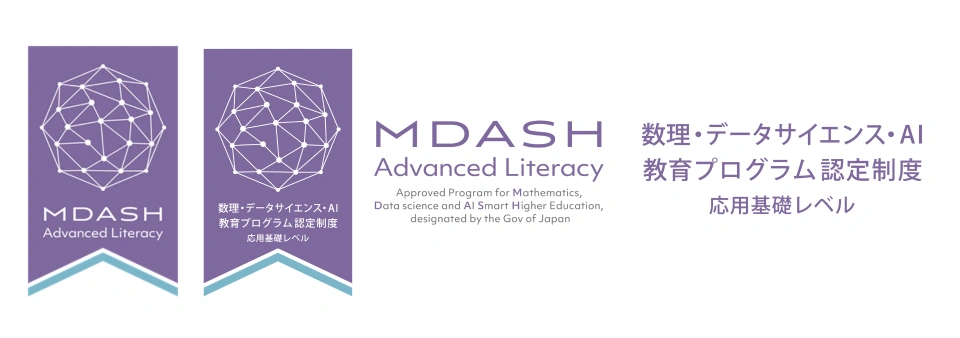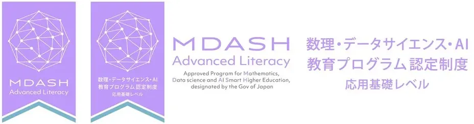 本プログラムは、令和7年(2025)年8月26日付で、文部科学省「数理・データサイエンス・AI認定制度(応用基礎レベル)」に認定されています。