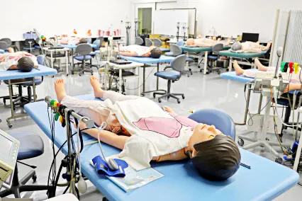 模擬薬局やシミュレーター室、無菌注射剤調製室、TDM室など、薬剤師が活躍する現場をリアルに再現した実習室が充実。ほかにも、薬学教育開発・支援室、4~6年生用のセミナー室や実験研究室なども設け、より高い実践力の養成を実現します。