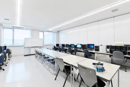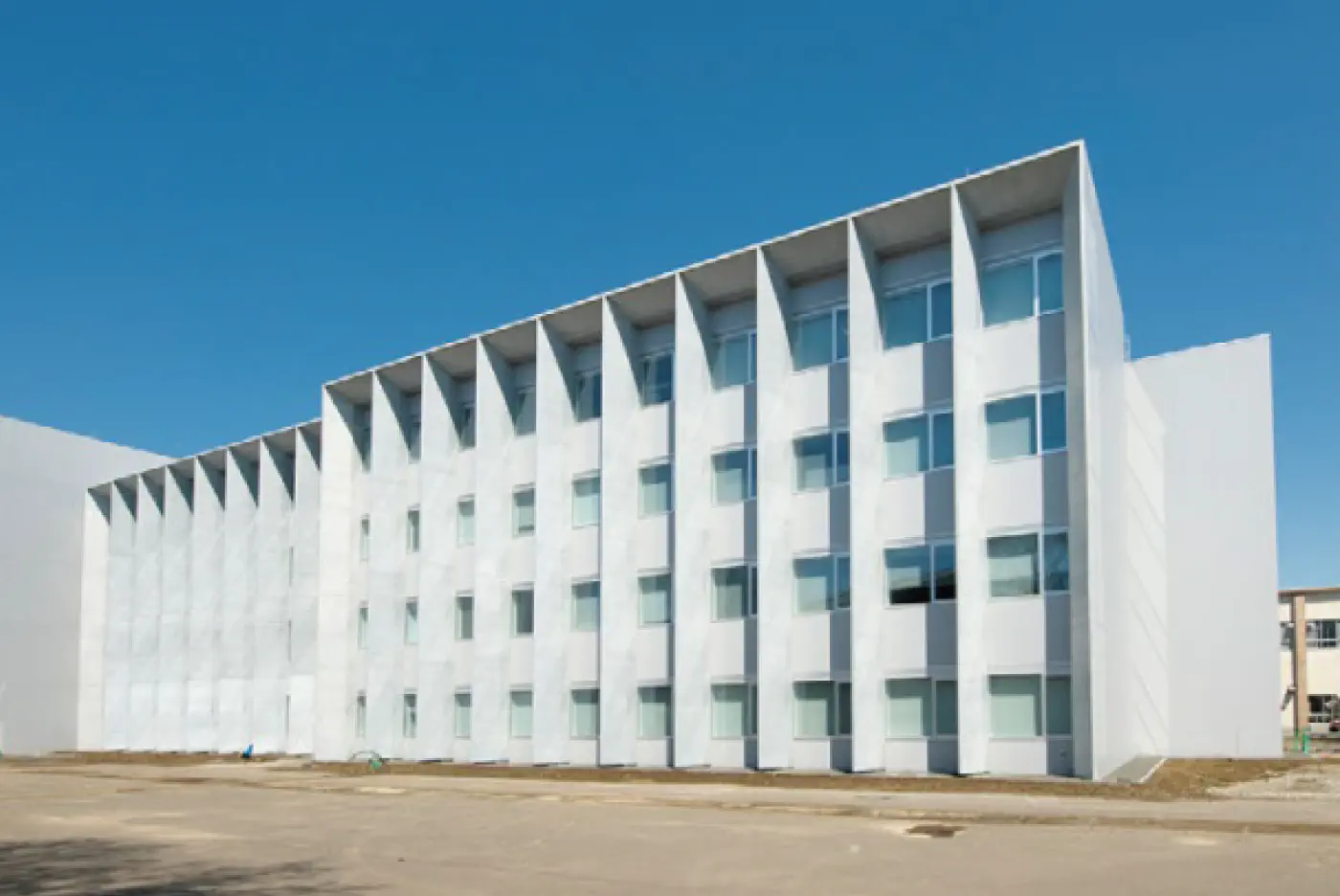 機械工学科、情報工学科、情報科学部情報科学科、電気電子工学科の実験室や研究室等が配置された工学部棟です。