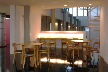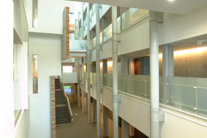 近代的な建築デザインとIT環境が整った、キャンパスライフの中心的な存在。学生たちが行き交う自慢のスポットです。