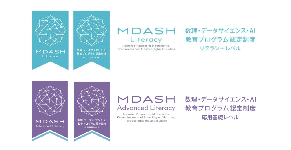 北海道科学⼤学は、⽂部科学省「数理・データサイエンス・AI教育プログラム認定制度(リテラシーレベル)」及び「HUS数理・データサイエンス・AI教育プログラム認定制度(応用基礎レベル)」に認定されています。