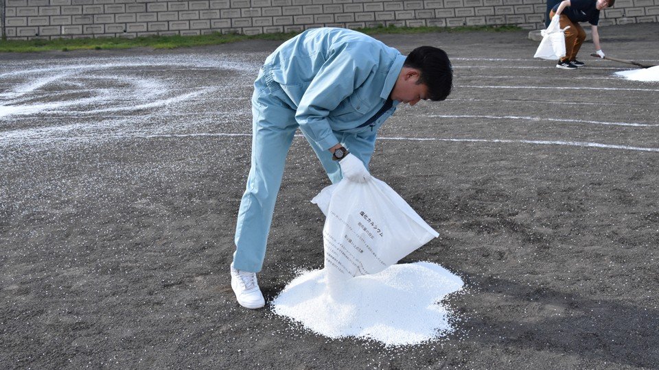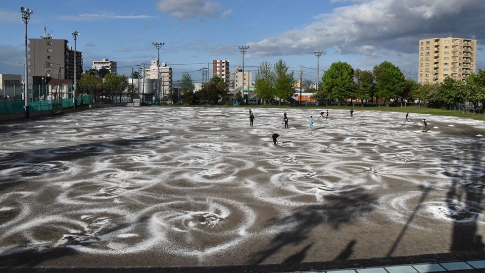 「グラウンドまもり隊」は、ボランティア活動を通し大きな喜びと達成感を感じることで、学生が大きく成長することを目的に都市環境学科 亀山 修一教授らが企画したもので、今年は都市環境学科の学生約135名がグループに分かれ、手稲区内の小学校のグラウンドで運動会のための防塵剤(塩化カルシウム)散布のボランティア活動を行います。