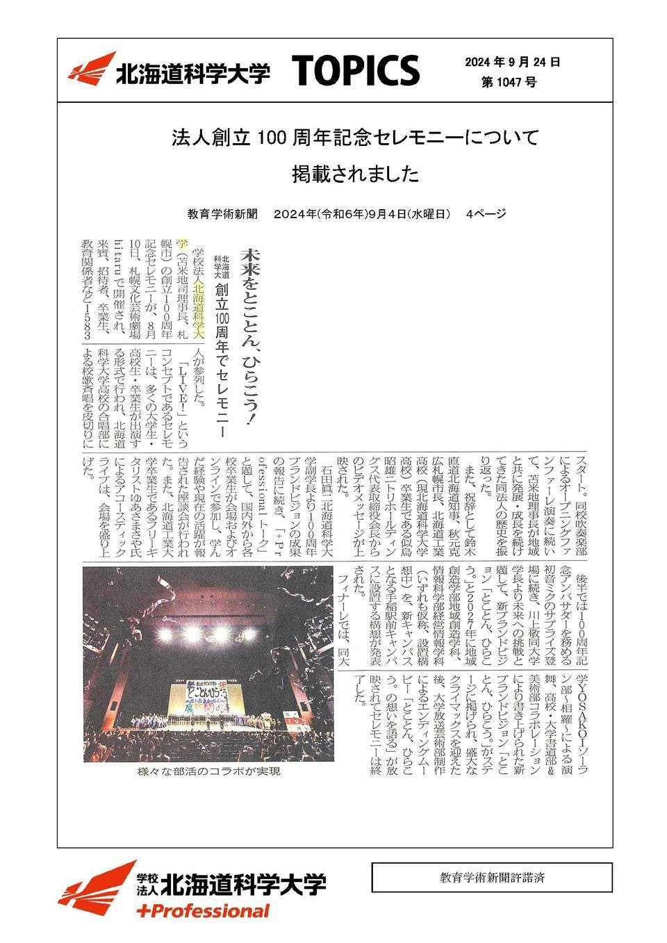 メディア掲載2024年09月04日法人創立100周年記念セレモニーについて新聞に掲載されました2024年09月04日教育学術新聞未来をとことん、ひらこう!(4面)記事はこちらこの記事をSNSでシェアXでシェアするLINEでシェアする