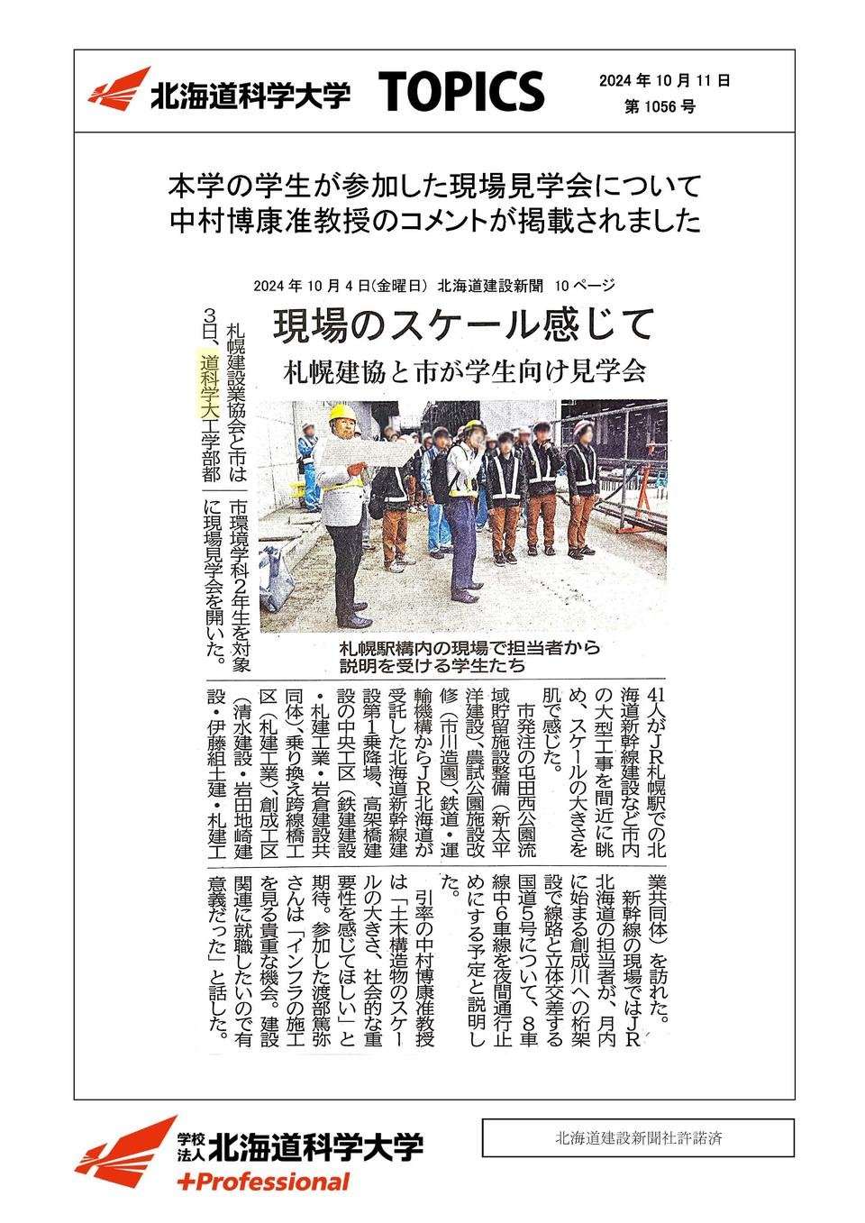 工学部メディア掲載2024年10月11日本学の学生が参加した現場見学会について中村博康准教授のコメントが掲載されました2024年10月04日北海道建設新聞現場のスケール感じて(10面)記事はこちらこの記事をSNSでシェアXでシェアするLINEでシェアする