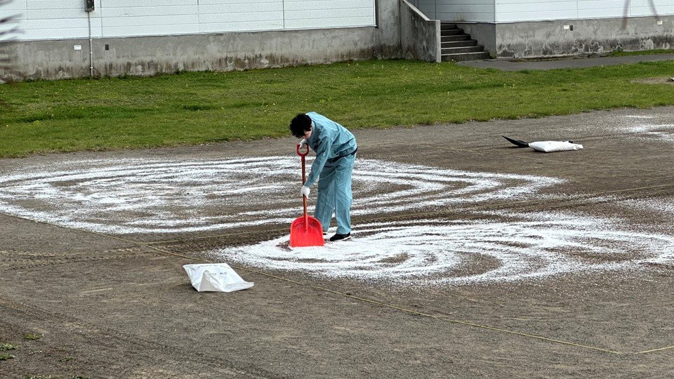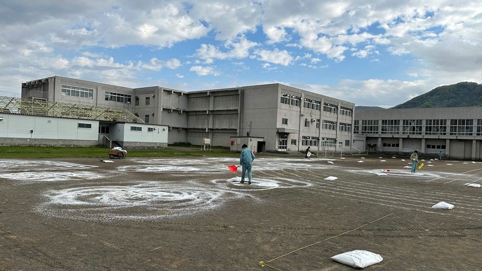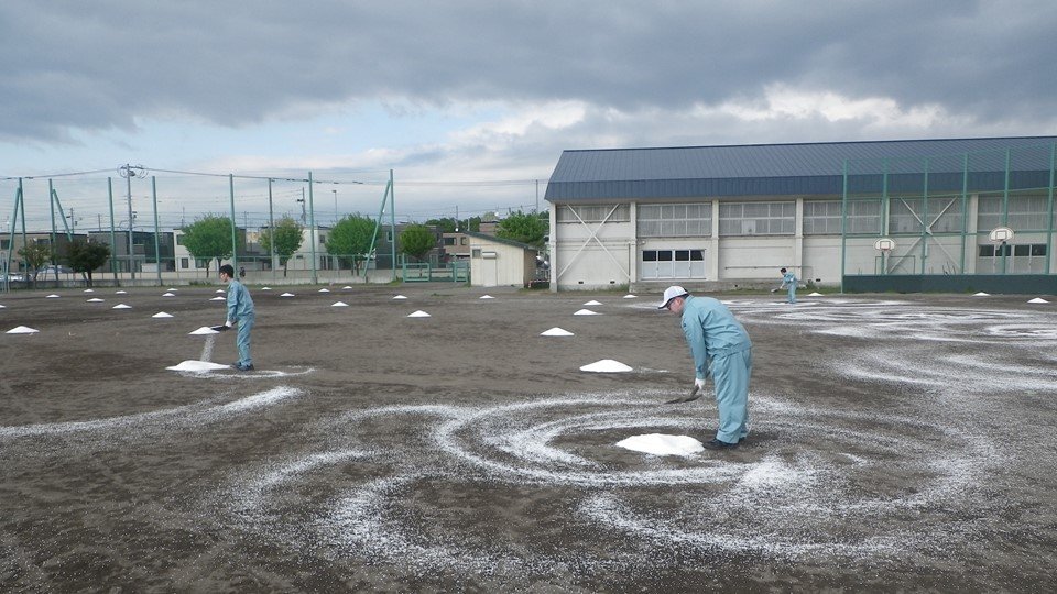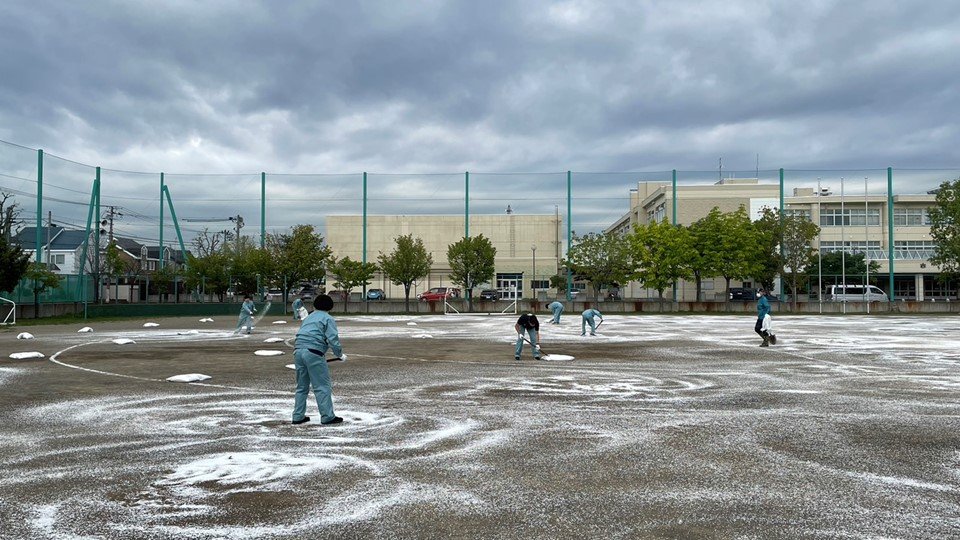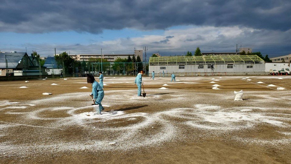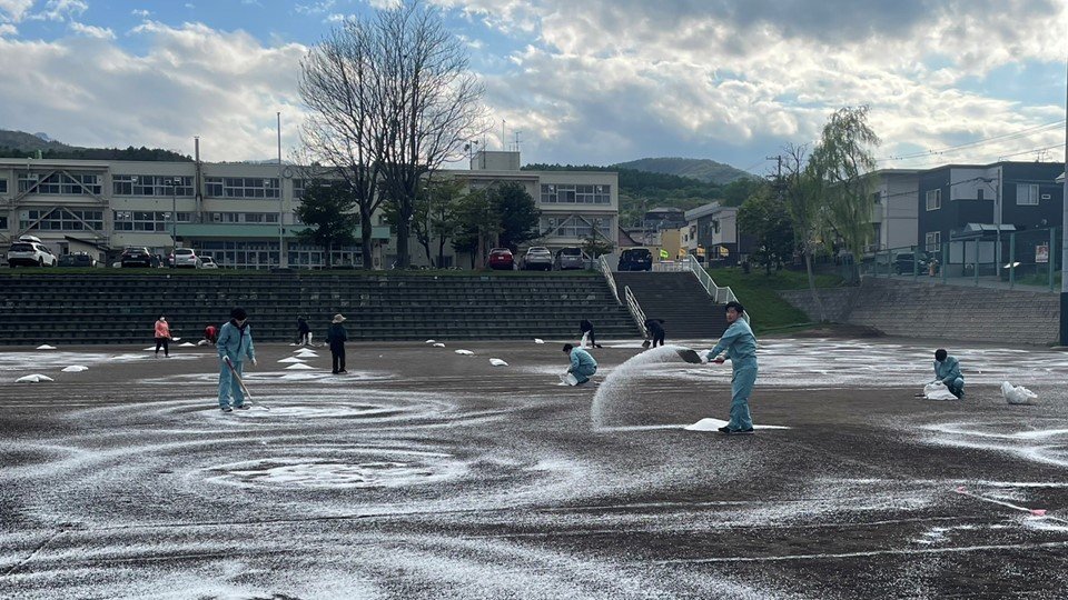 2023年5月12日(金)・5月19日(金)・5月26日(金)の3日間で手稲区内の8つの小学校の各グラウンドにおいて、「グラウンドまもり隊」が防塵剤(塩化カルシウム)散布を実施しました