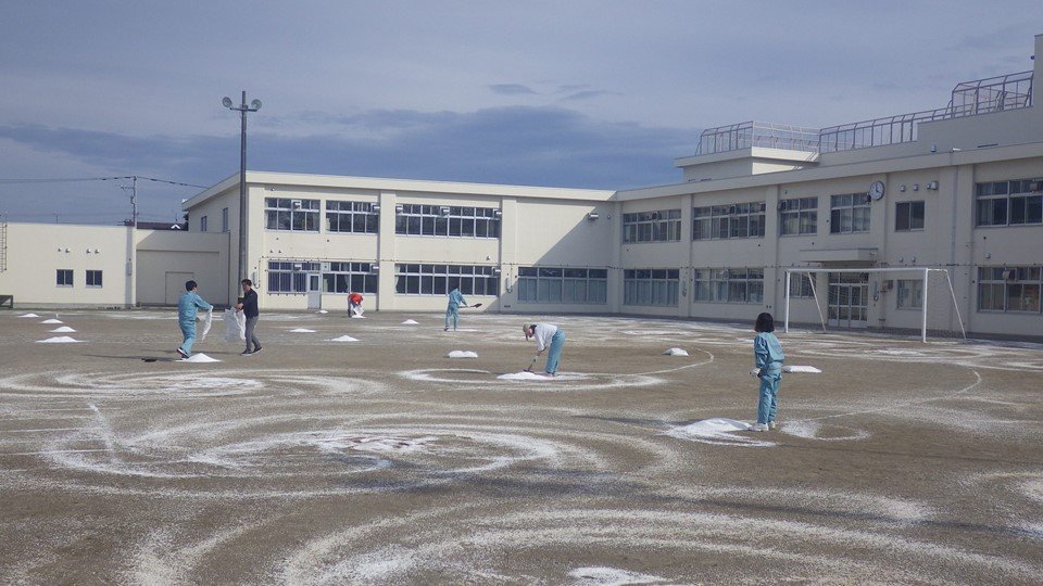 防塵剤散布当日は、小学校の先生方や用務員の方々によって散布作業への協力をいただいたこともあり、学生たちはスムーズに作業を進めることができました。