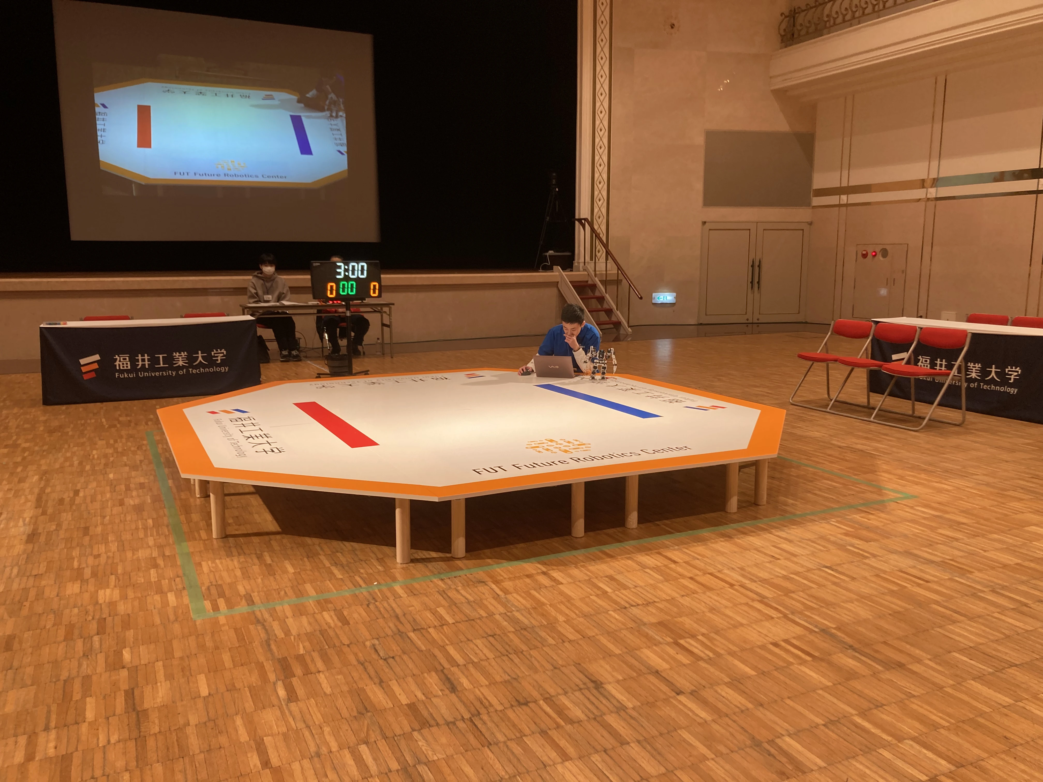学生交流イベントの一環として、自作ロボットを用いてフィールド上で対戦を行う競技「ROBO-ONE」が開催され、本学からは出川奏楽さん(工学研究科 1年)東尚廣さん(機械工学科 4年)、合田陽音さん(同 3年)、中本舜麻さん(同 2年)、山野井真さん(同 2年)の5名が出場しました。