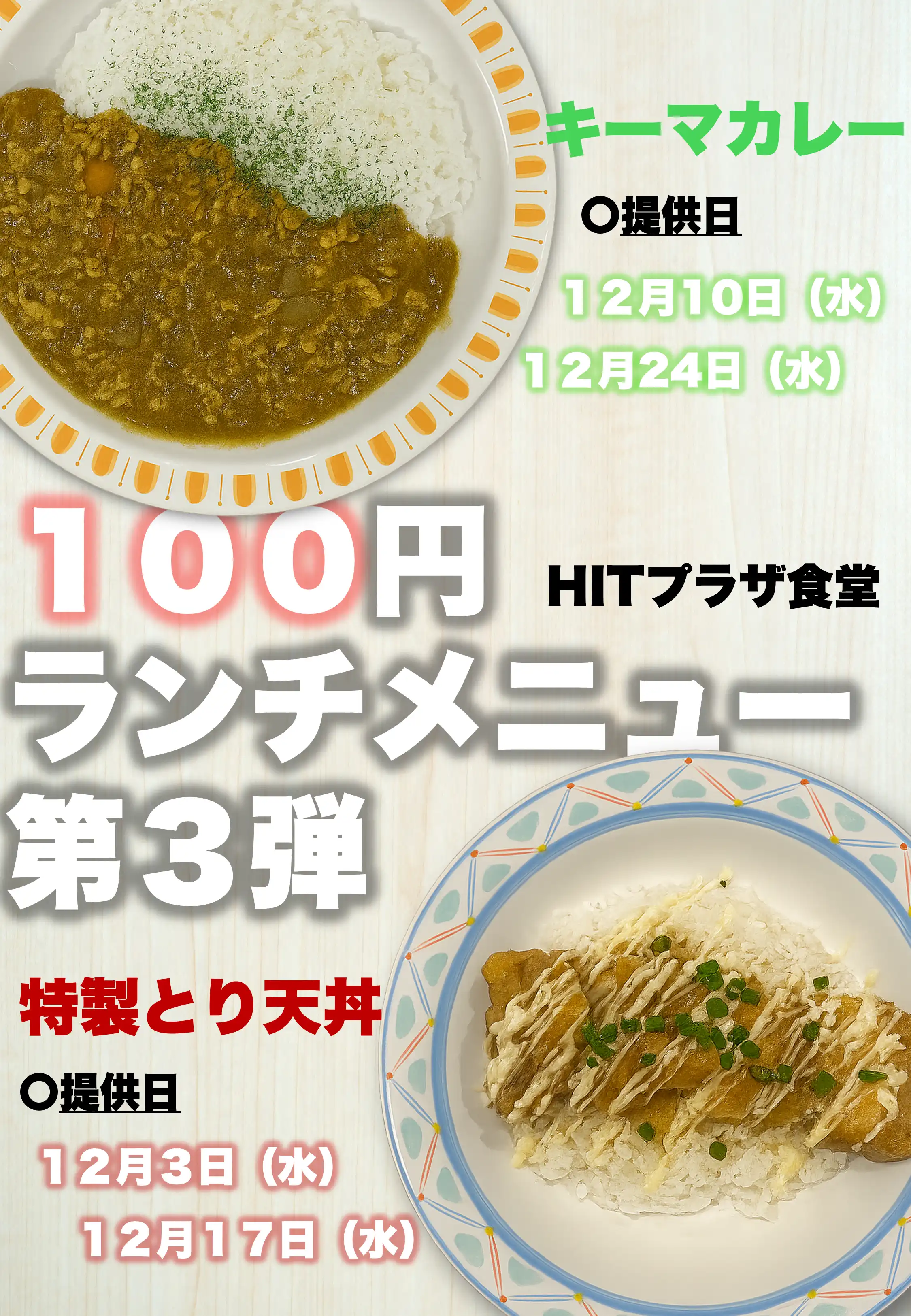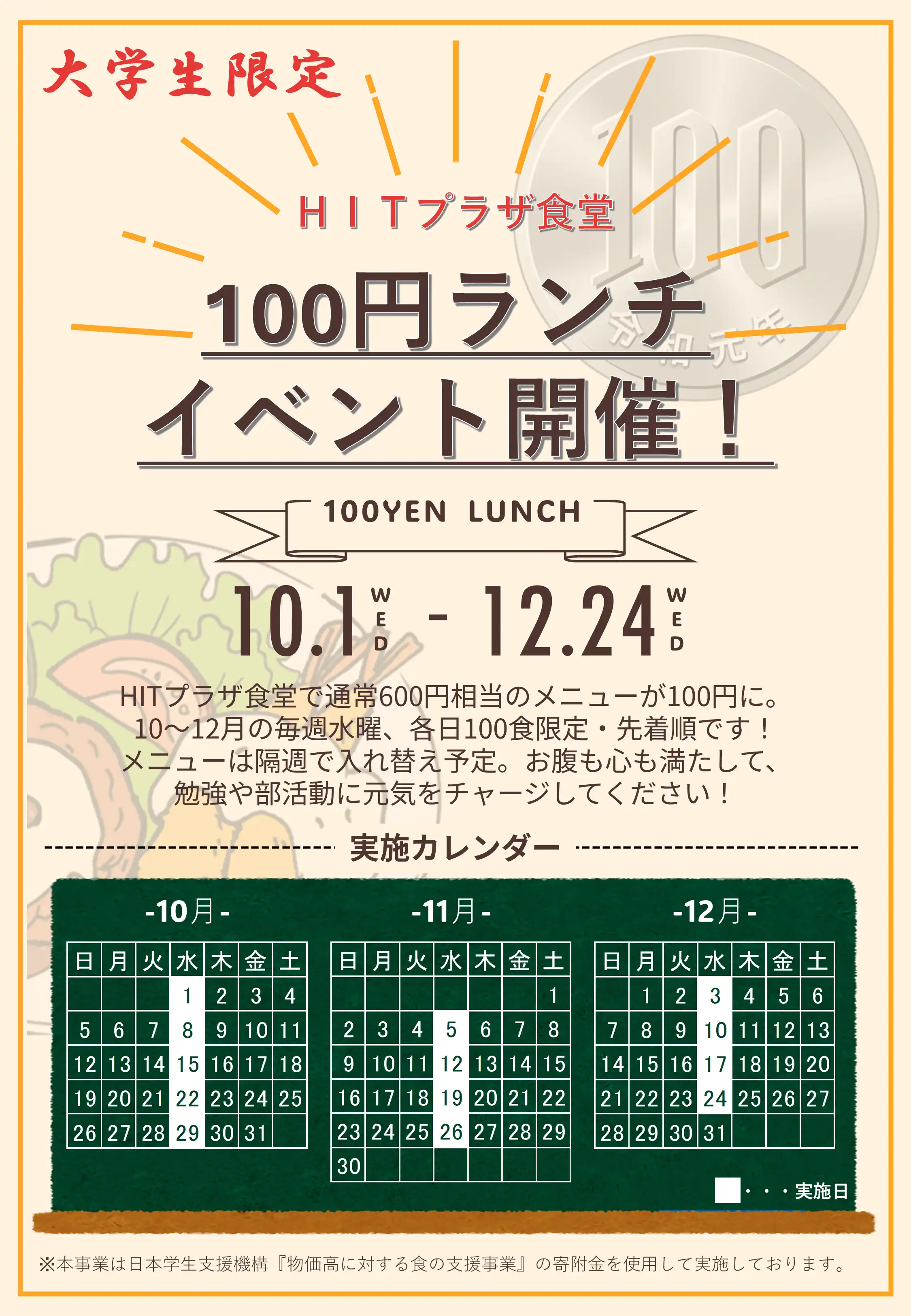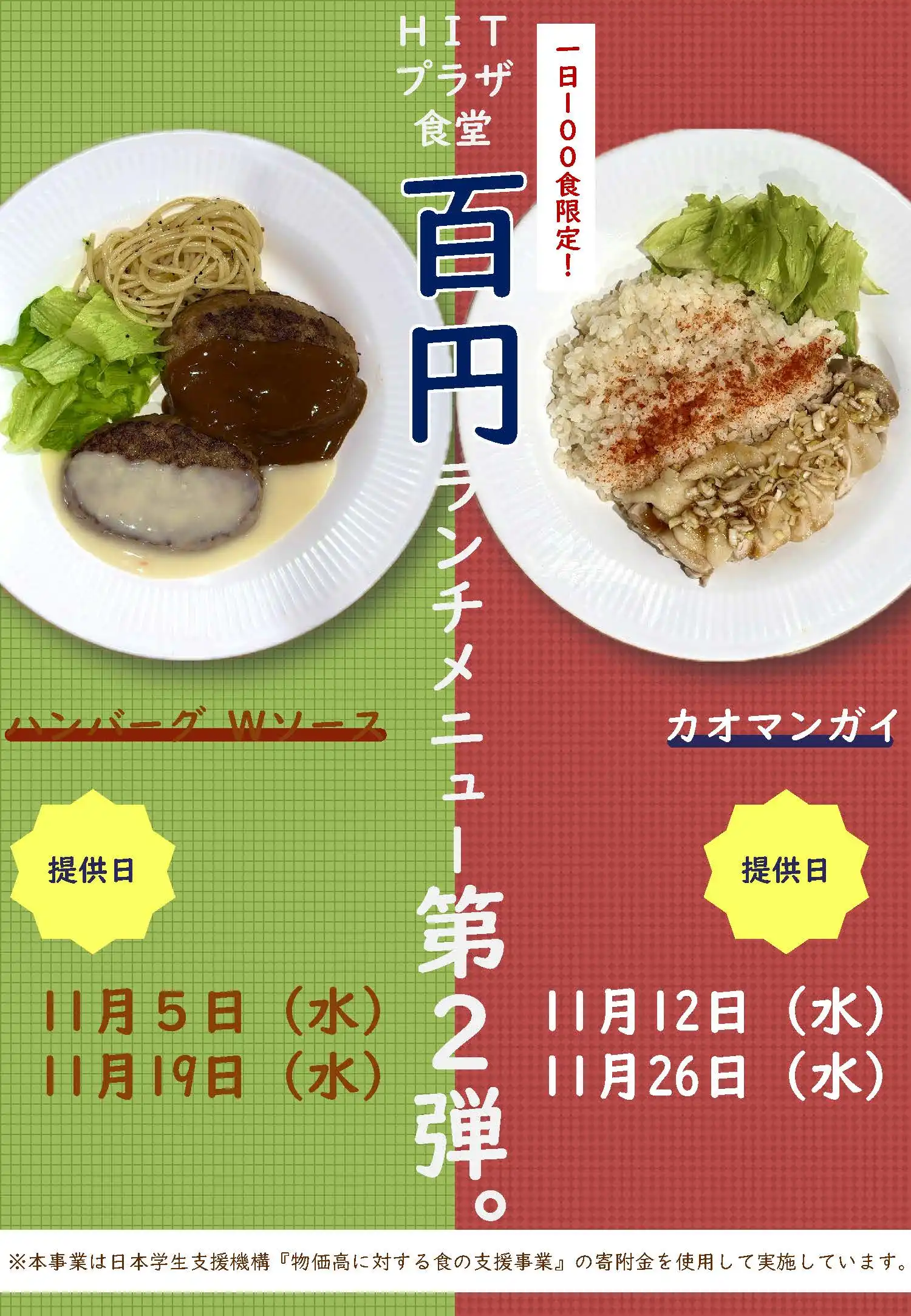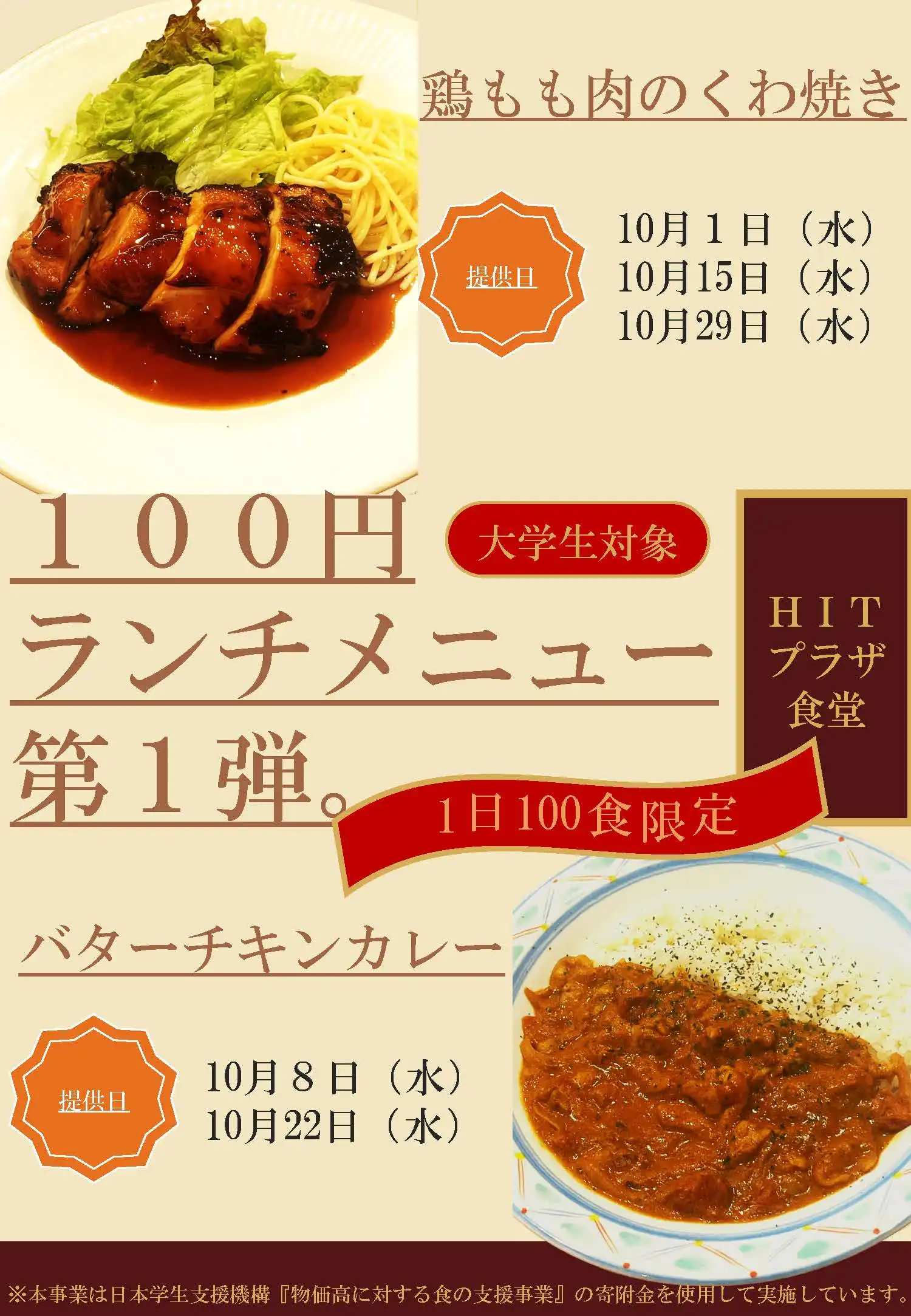 物価高騰の影響を受ける学生の生活を支援する取り組みとして、HITプラザ食堂において「100円ランチイベント」を実施しました!