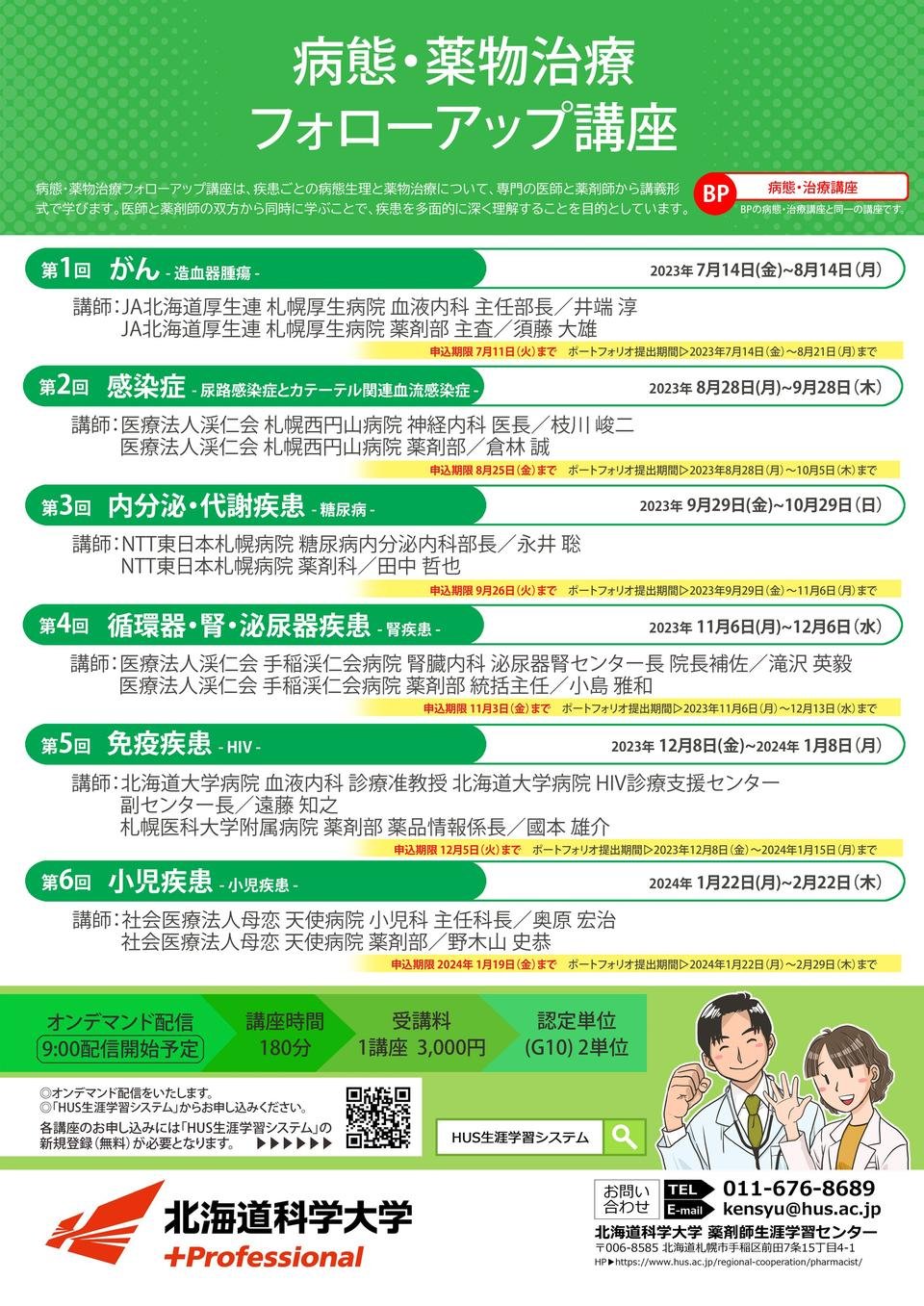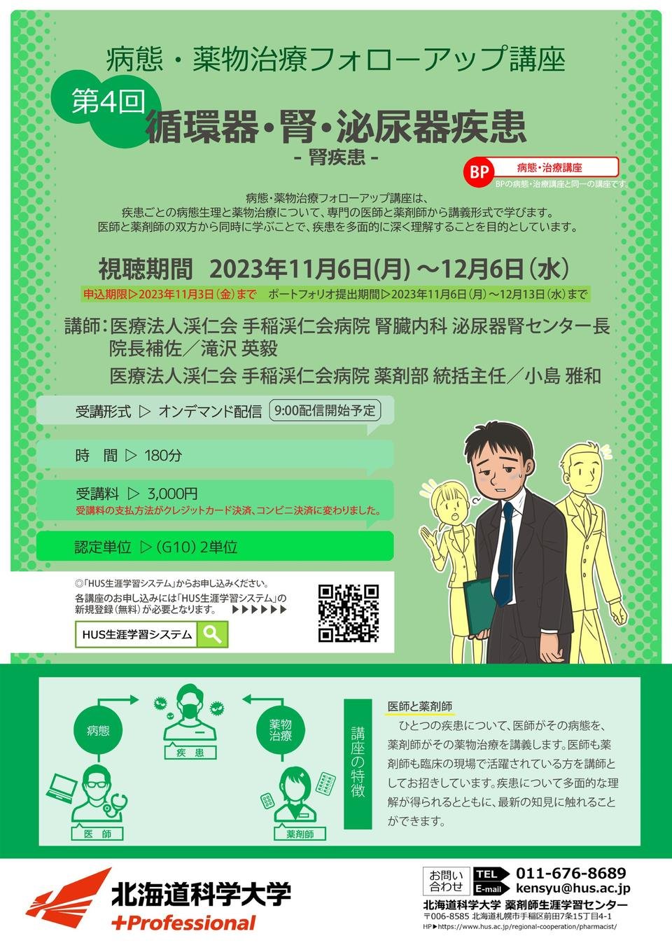 2023年11月6日(月)より、北海道科学大学 薬剤師生涯学習センター主催講座【第4回病態・薬物治療フォローアップ講座】を開催いたします。