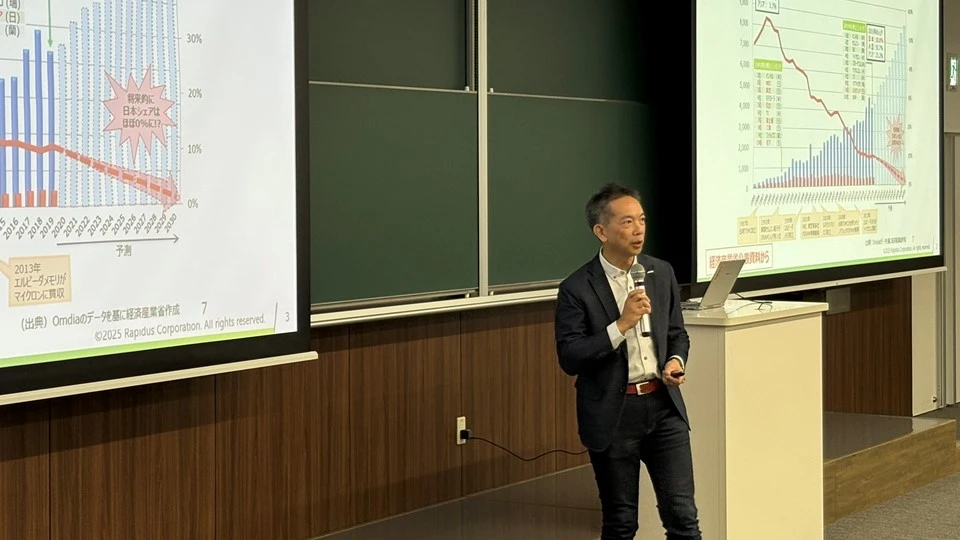 Rapidusは本年7月、2nmプロセスで製造したトランジスタの動作を実証し、その驚異的なスピードを達成。講演では、その成果に至るまでの道のりや、先端プロセスへの挑戦に込めた熱い思いが語られました。