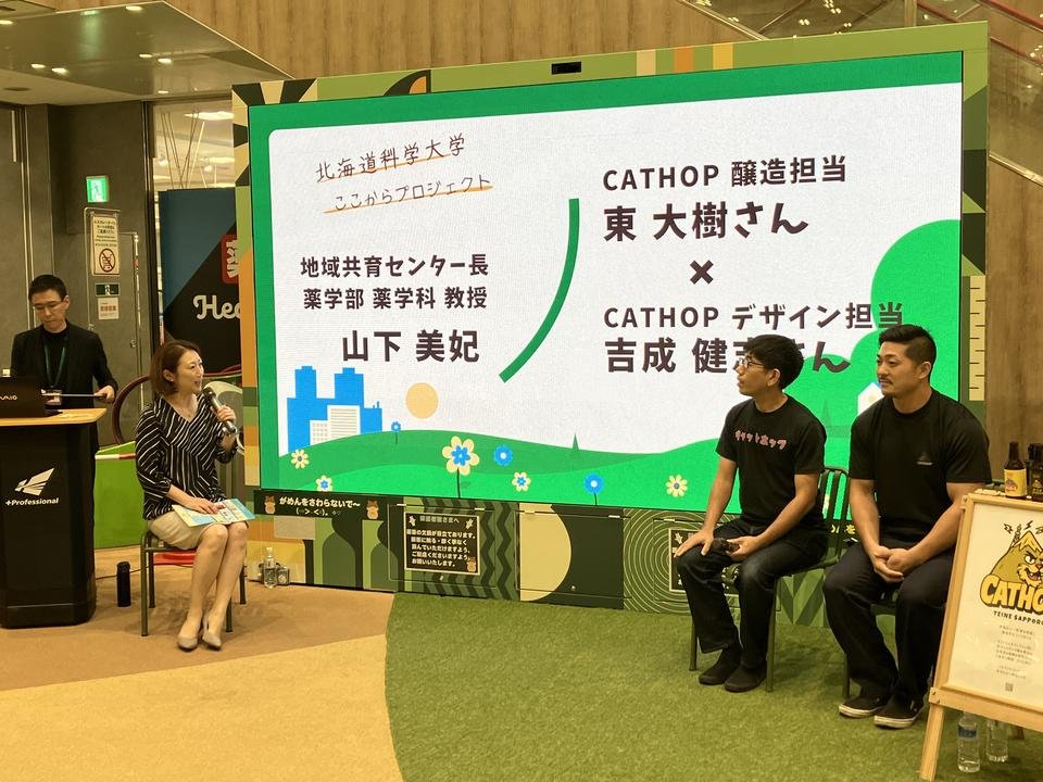 1組目のクロストークゲストには、手稲でクラフトビール醸造所「CATHOP」を立ち上げた東さんと吉成さんを迎えました。