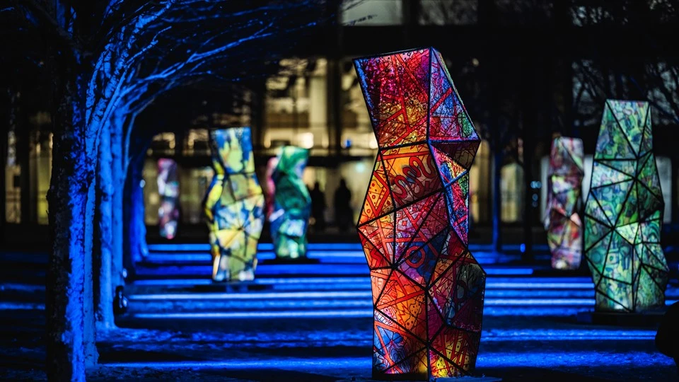 多くの企業様からいただいたご寄付をもとに制作した合計20基の光のオブジェがキャンパスを彩ります。