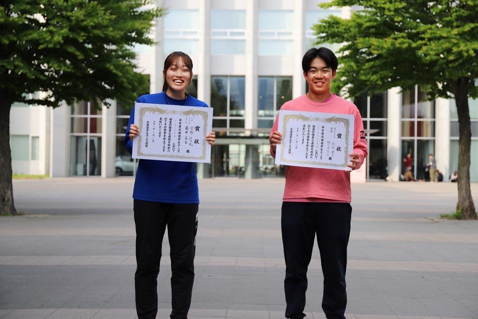 北海道学生テニス トーナメント大会で本学の建築学科3年熊倉康太さんが男子ダブルスで優勝!診療放射線学科1年京野ほの花さんが女子ダブルスで3位になりました!