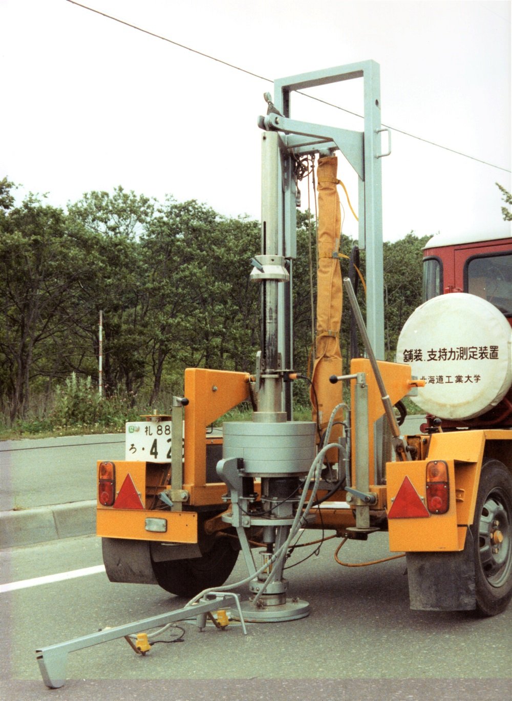 その中でも、オランダのシェル石油の研究所で舗装の撓みを測定する目的で開発された落錘式撓測定器(らくすいしきたわみそくていき)通称「F.W.D」は、国内で初めて北海道工業大学に導入されました。