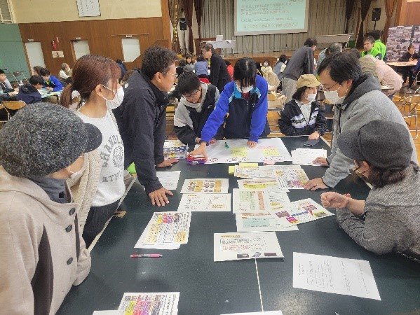 ワークショップでは注意報が発表された際に自分たちが何をすべきか各グループで話し合いが行われました。