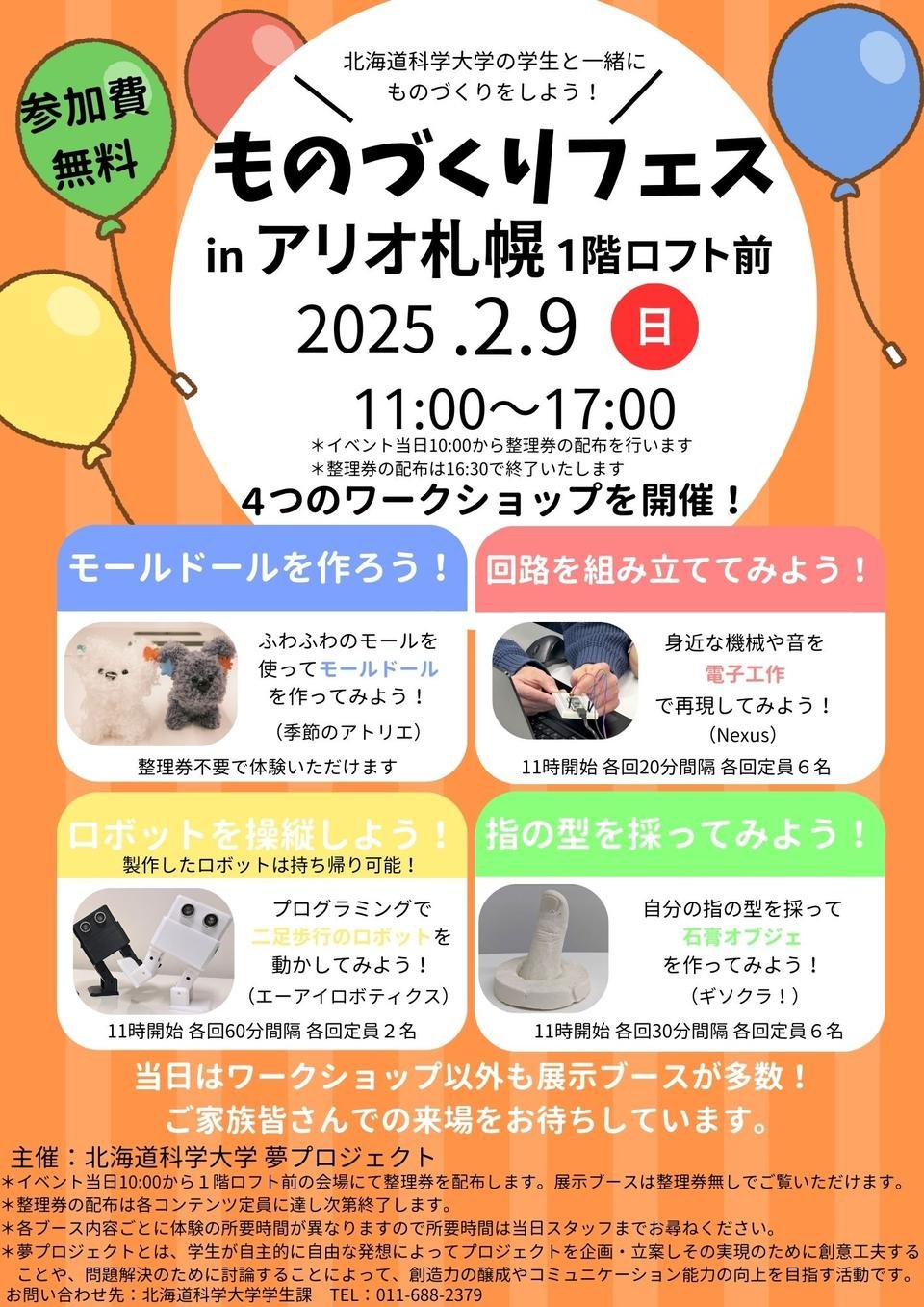 アリオ札幌で夢プロジェクトの有志団体による「ものづくりフェス in アリオ札幌」を開催します