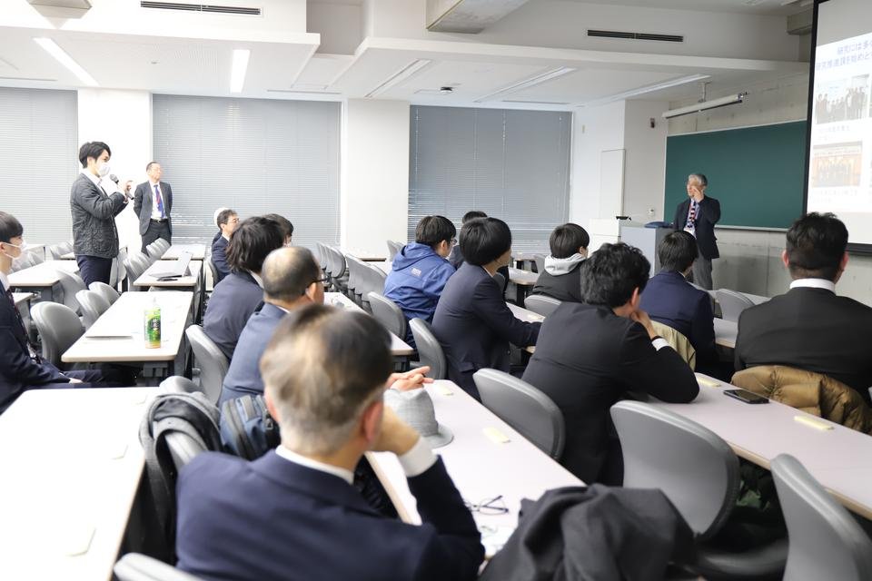 講義内では、研究職経験を基に行った、機械工学科での授業改革や実践的な学びへの挑戦、地域連携やゼミ活動の広がりが紹介されました。また、教育理念に加え、空気清浄機の開発やプラズマアクチュエータの北国応用など、多岐にわたる研究への取り組みについても詳しく紹介され、講義内容からは、研究が多くのゼミ生や大学関係者、共同研究先の支えによって進められてきたことが伝わりました。