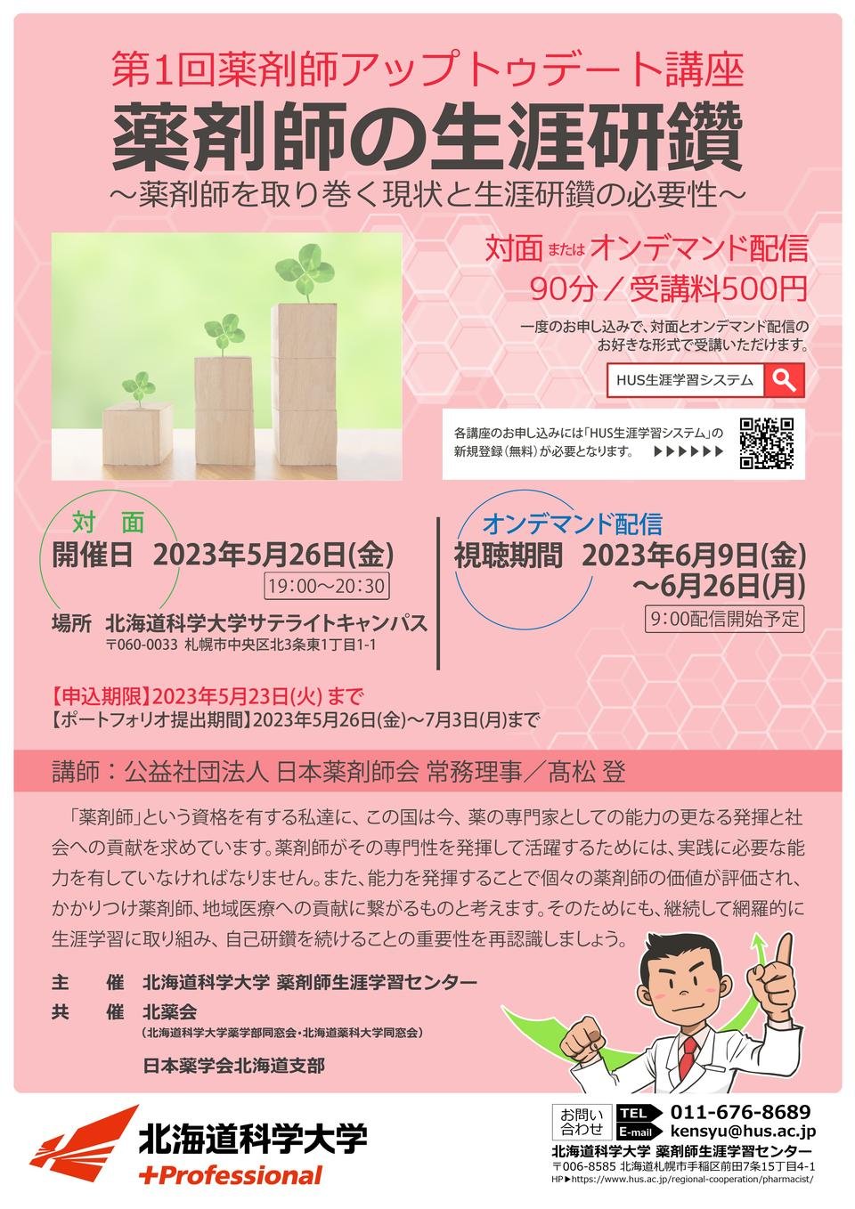2023年5月26日(金)、北海道科学大学 薬剤師生涯学習センター主催講座【第1回アップトゥデート講座】を開催いたします。