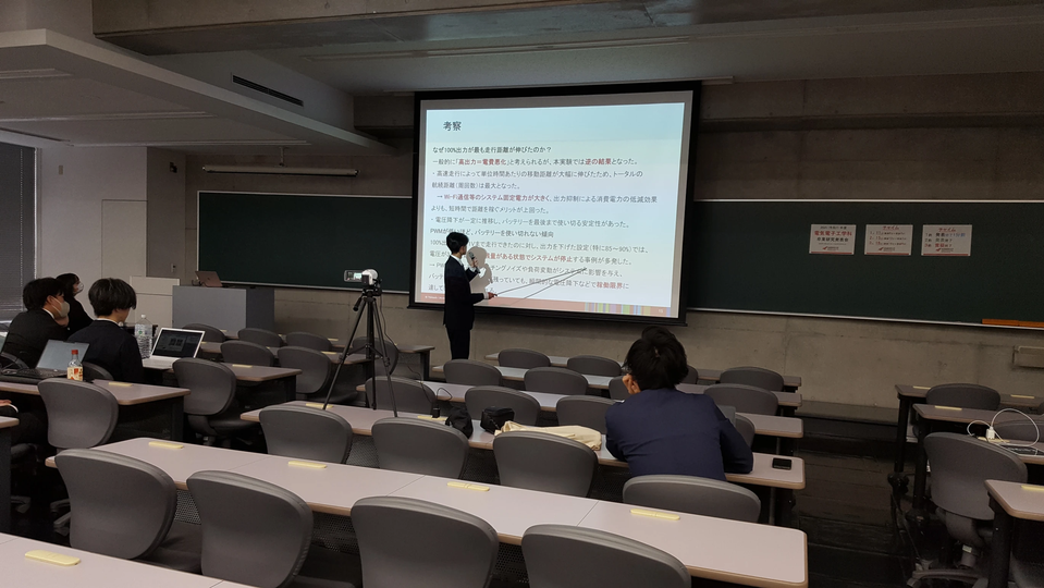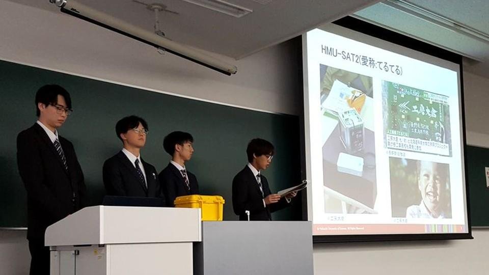 長年研究を続けている超小型人工衛星に関するテーマや、災害時の人命救助に役立てるためのテーマについての発表がありました。