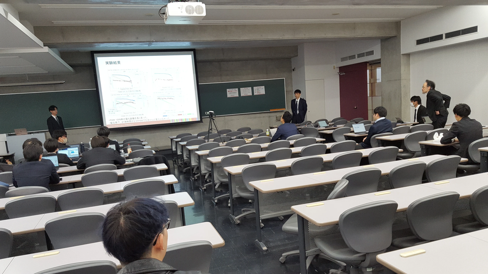 昨年度に続き、今年度の12月開催も、多くの学生・教員が参加する中で活発な質疑応答が行われました。さらに、4年生がこれまでの研究成果を堂々と発表し、非常に盛会な卒業研究発表会となりました。