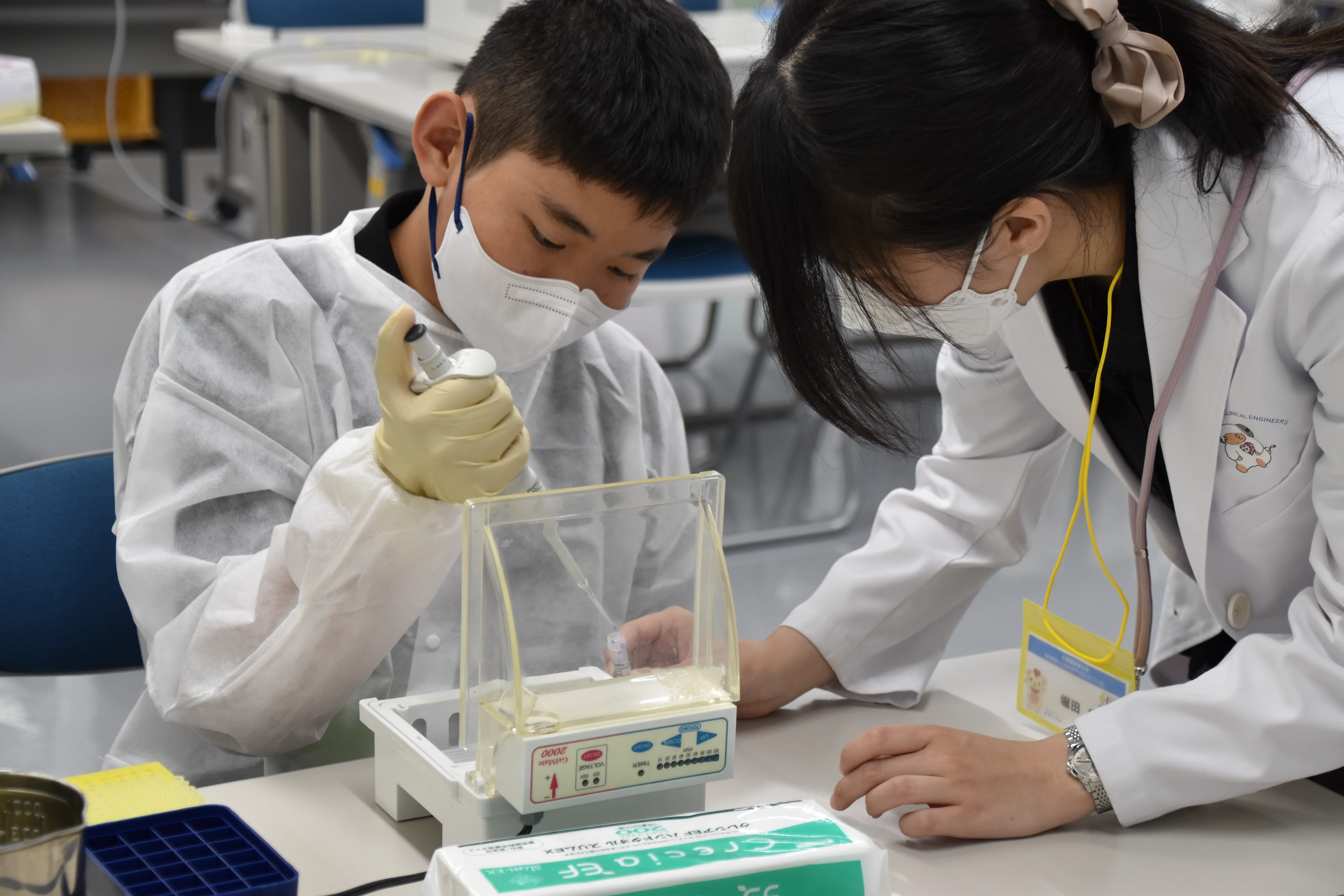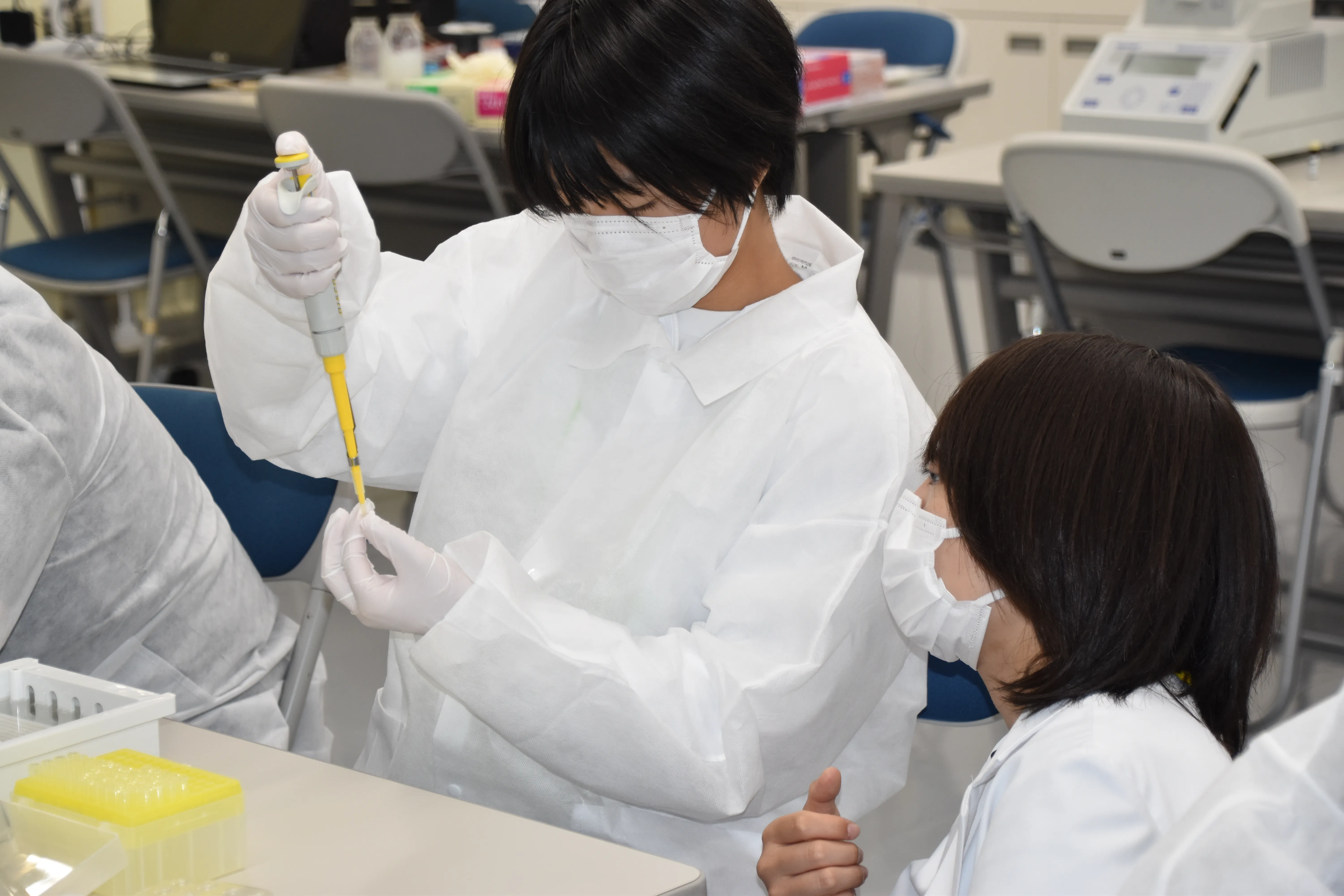 「PCR検査の体験とウイルス濃縮の有効性」をテーマとした今回は、PCR検査の仕組みなどの講義の後、実際にPCR検査を一人ひとり体験し、ウイルスの検出を実践しました。