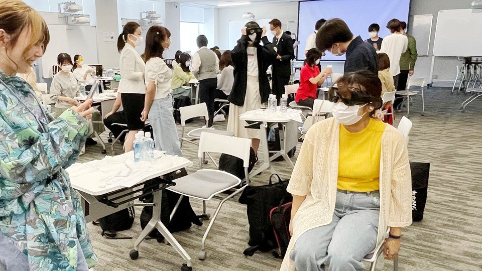 どのような見え方・聞こえ方の特徴があるのか、また、人と人との声がけなどコミュニケーションが起こるのかを一人ひとりが体験しました。