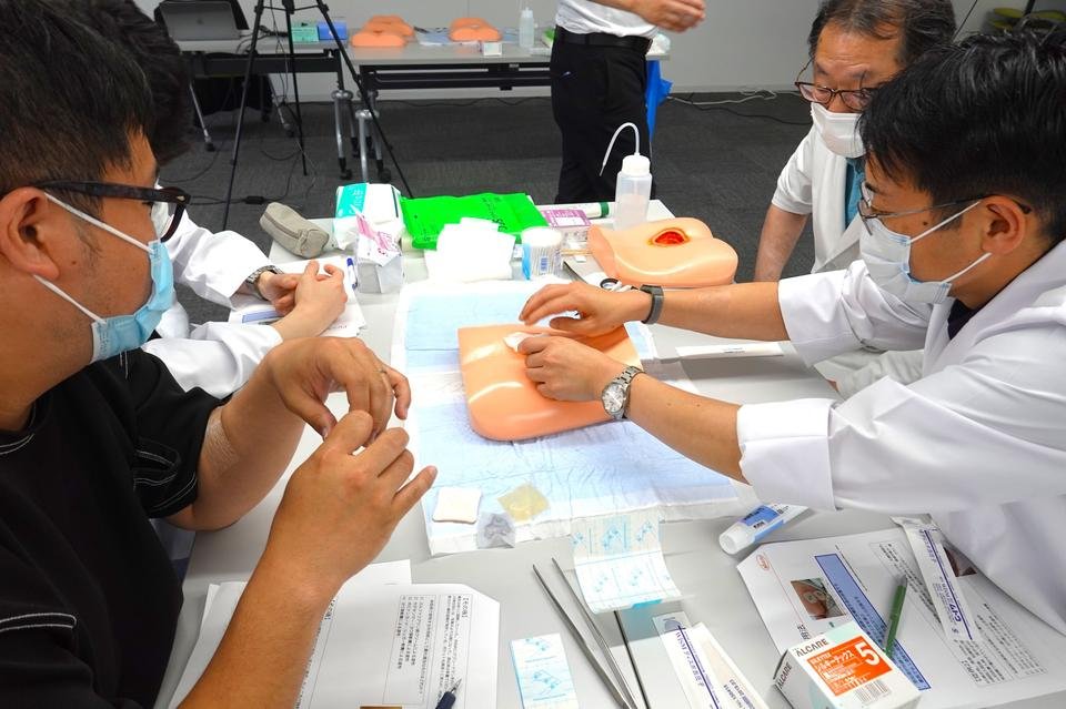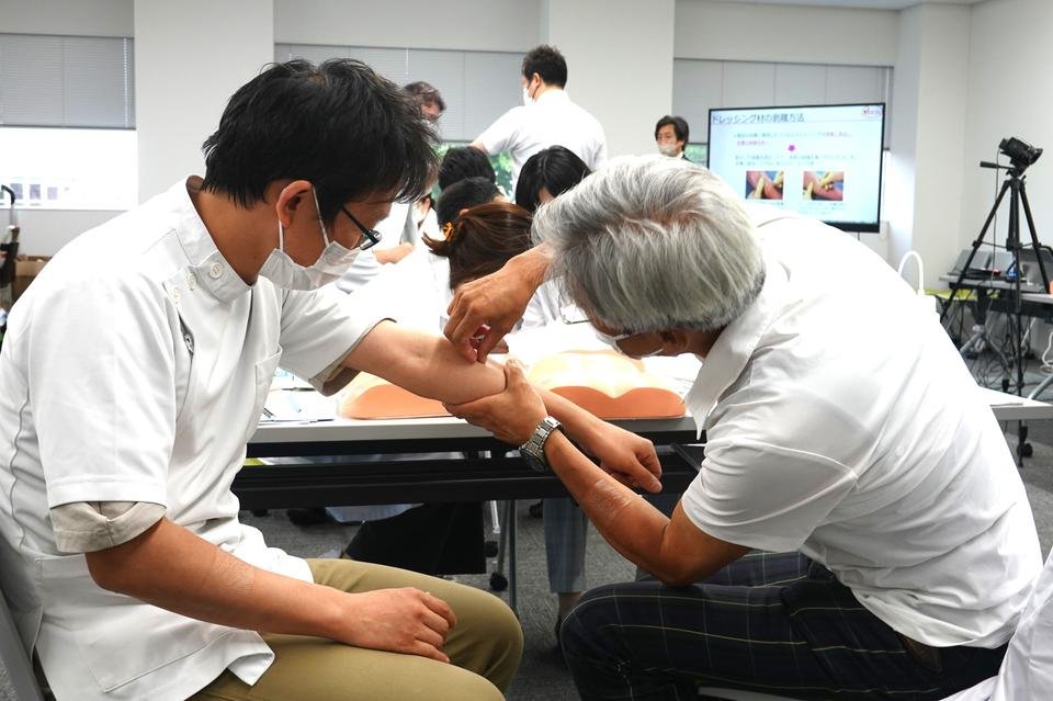 褥瘡モデルを用いた外用療法実習では、現場ですぐに使用できる実践的な講習となりました。