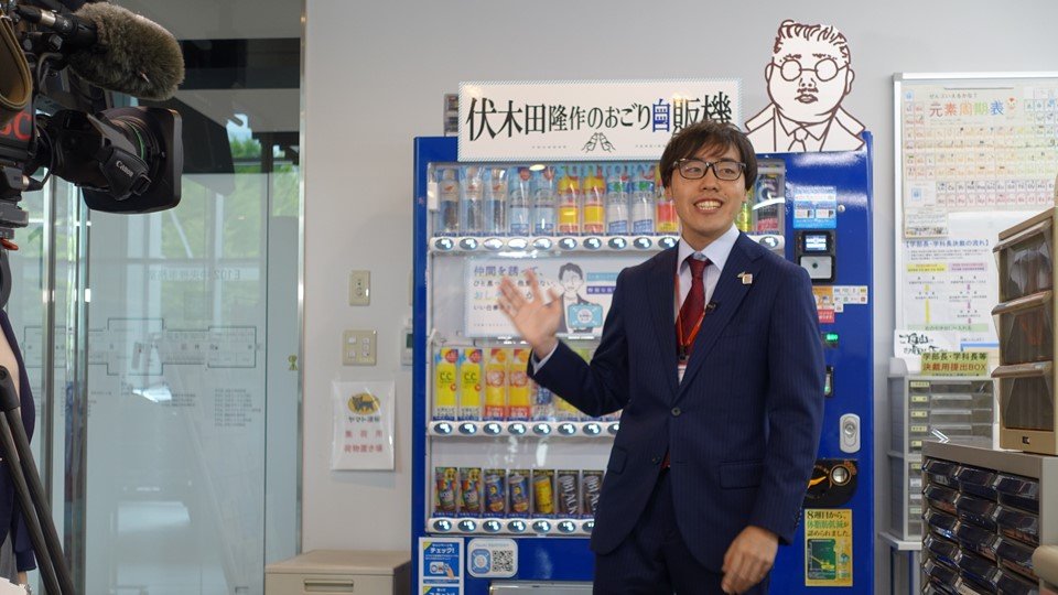 5月29日(水)放送の「今日ドキッ!」内で、前田キャンパスの教職員を対象とした「社長のおごり自販機」(本法人名称「伏木田隆作のおごり自販機」)について放送されました