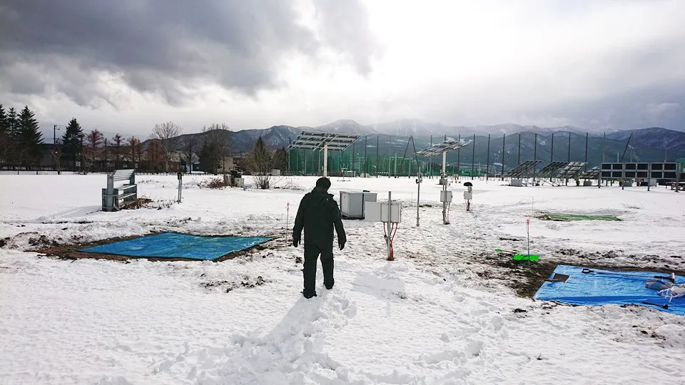 松田准教授は、掘削のり面の凍土処理に対するコスト低減策を検討することを目的に、断熱シートの凍結制御対策について実験的に検討しました。