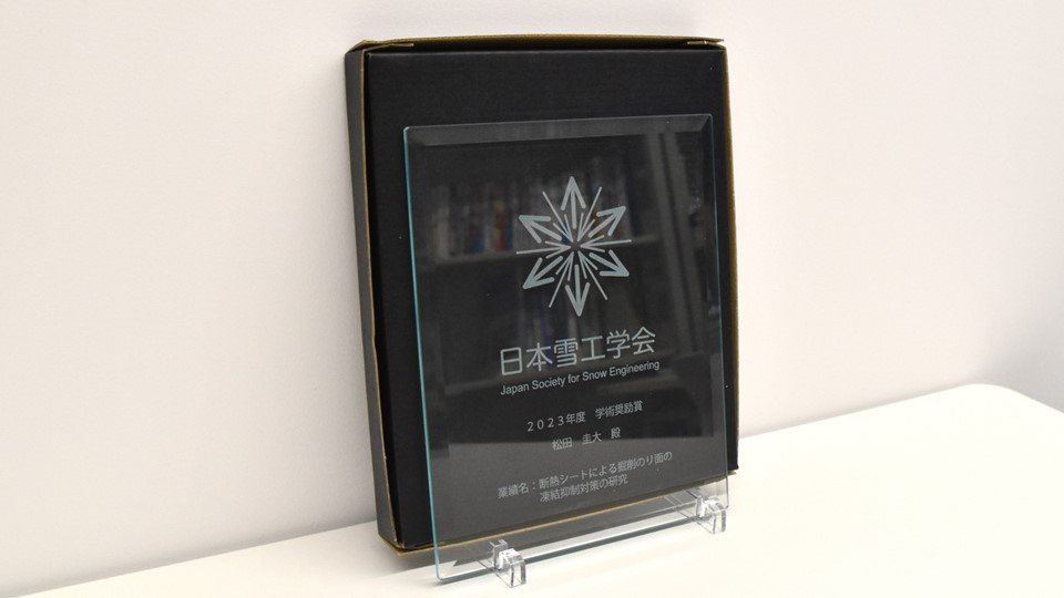実験の結果、既に実用化されているものの中で凍結制御効果の高い断熱シートを見出し、本論文で得られた成果は地盤の凍結制御対策として有益な知見と言えるとのことから、日本雪工学会学術奨励賞に相応しいものと判断され受賞に至りました。