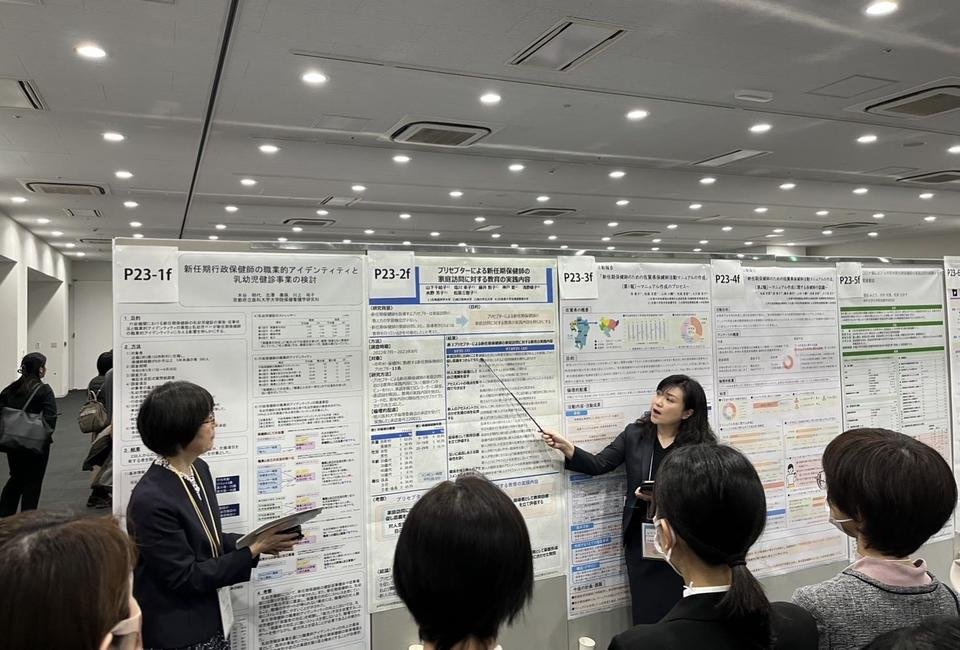 本学では、旭川医科大学・旭川市立大学・日本赤十字北海道看護大学の研究者と自治体との協働で、保健師の現任教育における家庭訪問の教育モデルを開発しています(JSPS22K11168)。本学からは、公衆衛生看護学専攻科の松原教授・水野講師、看護学科の山下助教が参加しています。今回は、チームを代表し山下助教が演題発表を行いました。