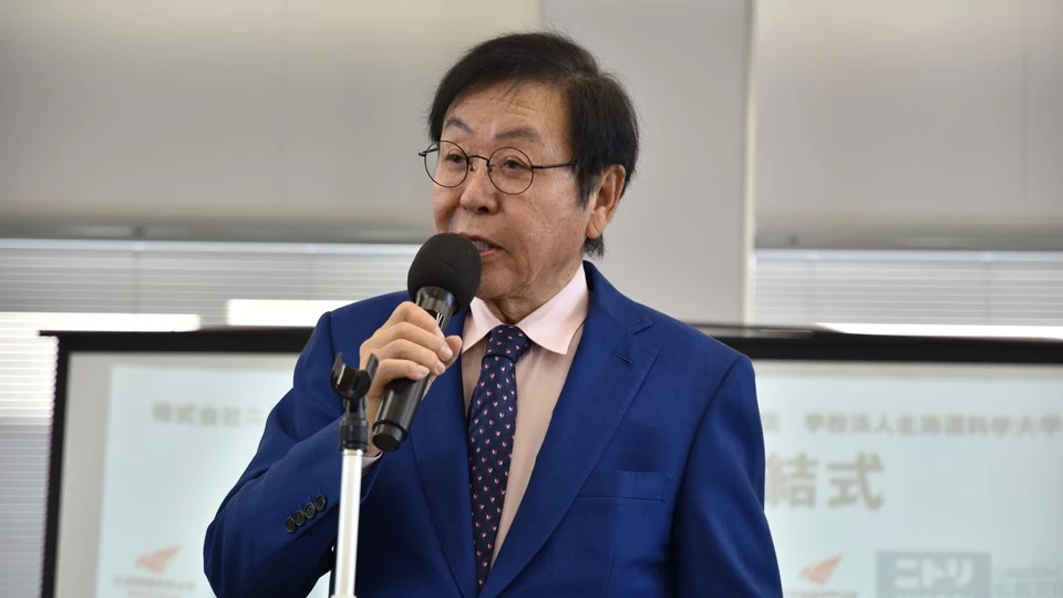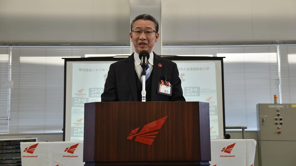 2025年2月10日(月)、学校法人北海道科学大学は株式会社ニトリホールディングス、公益財団法人似鳥文化財団と、地域の活性化および社会の発展に寄与することを目的として、包括連携協定を締結しました。調印式は北海道科学大学 R6棟(JITAN PARK)にて執り行われ、関係者が出席する中、協定の趣旨や今後の展望について発表が行われました。