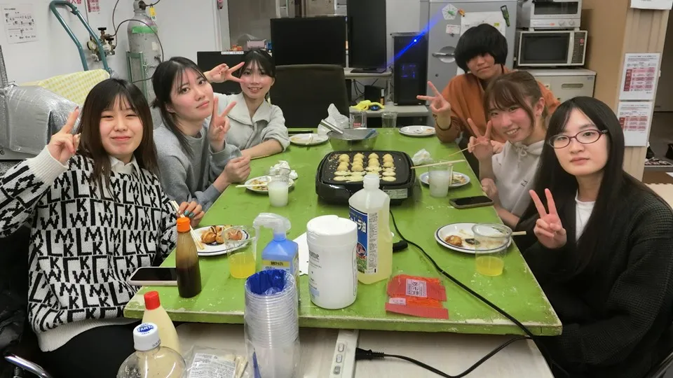 それぞれ講義や部活動、就職活動等で忙しい中、スケジュールを合わせて今回のたこ焼きパーティーを実現しました。