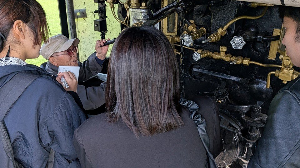 プロジェクトメインメンバーである3名(メディアデザイン学科2年津田彩花さん、岡田一花さん、人間社会学科2年山田楓さん)は、「保存から50年を迎えるキマロキそのものはもちろんですが、保存に携わられてきたSL機関士や市民の方々の記憶や想い出、オーラルヒストリーもしっかり受け止めながら、次の50年後に継承していくお手伝いが出来れば。自分たちが得てきたデザインや地域創造の学びを活かしながら、出来ることから取り組んでいきたいです」と述べていました。
