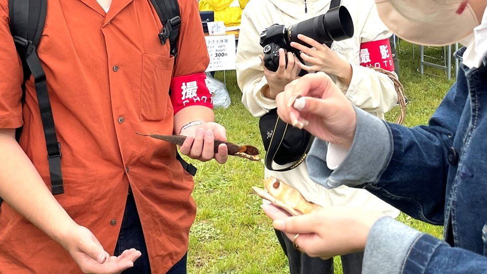 多くの家族連れと一緒になって、参加者視点の取材活動を行いました。目で見るだけでなく、植物を分解して、感触を確かめて、理解を深めました。