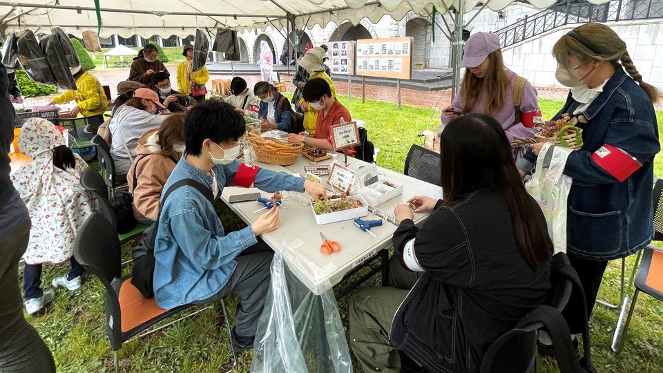 第9回授業となる2023年6月4日(日)は、テーマA「前田森林公園/都市公園とボランティア活動」 を選択する学生たちが、前田森林公園で開催された「ふじまつり」を取材しました。