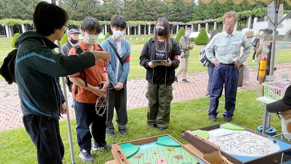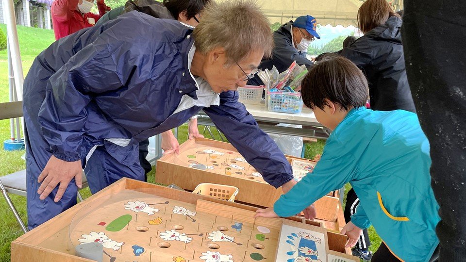 お祭りと言えば、レトロな遊び。スマートボールコーナーも人気です。札幌市内各所の公園職員さんが業務の合間を見て手作りされた台とのことです。
