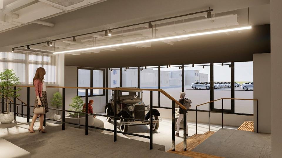 100周年を迎える節目の2024年、中の島キャンパス内北側に新校舎が誕生しました。1Fには98年前に教習で使用したB型フォードを展示しています。