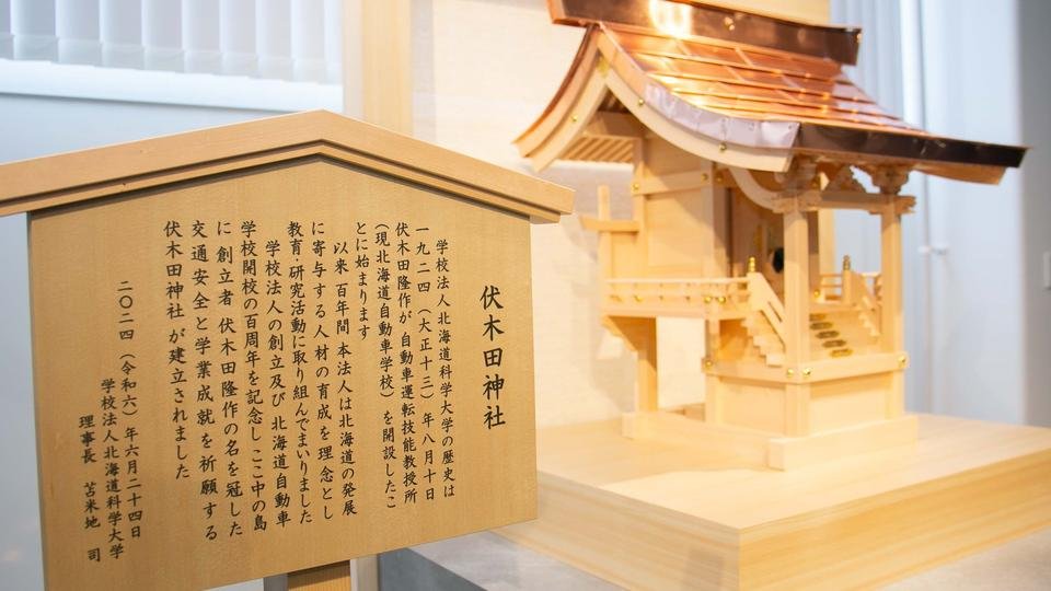 法人の創立と自動車学校開校100周年を記念して、創立者「伏木田 隆作」の名を冠した交通安全、学業成就の神社を本法人創立の地である自動車学校に建立いたしました。この伏木田神社の建立にあたっては、中の島キャンパスの地鎮祭など古くからつながりがある中島公園内にある伊夜日子神社にご協力をいただきました。