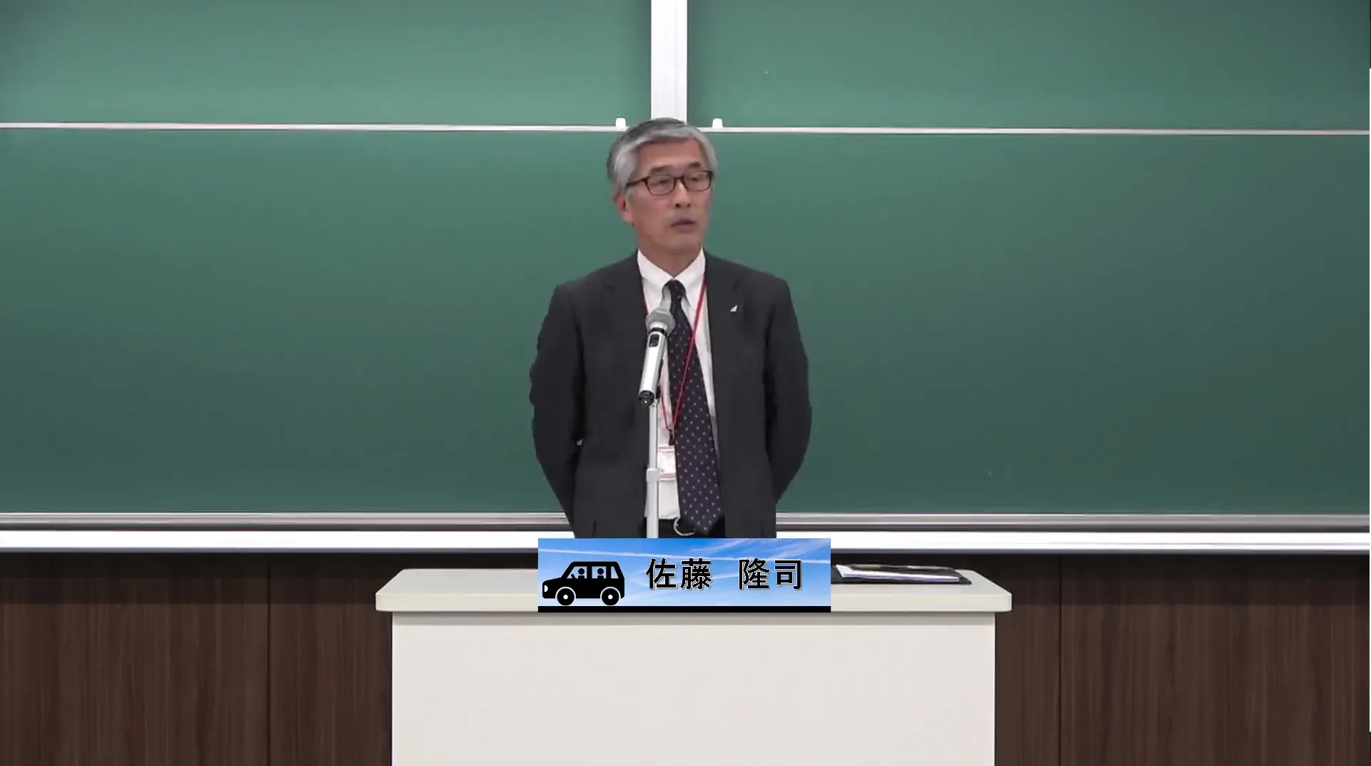 その後佐藤隆司学生支援センター長からの挨拶があり、最後に日下さん(情報工学科2年)から参加者を代表して交通安全宣言がありました。