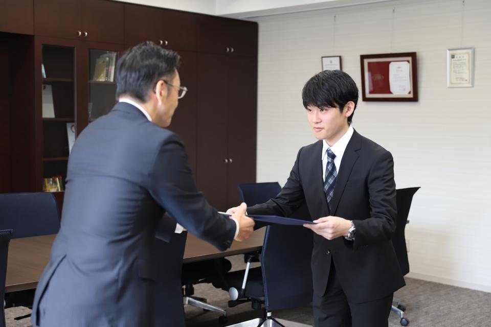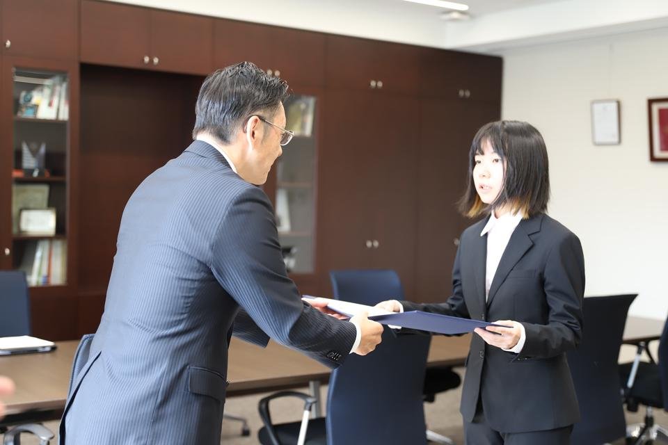 2023年10月4日(水)、学長室にて、学長賞表彰状授与式(前期)が行われました。