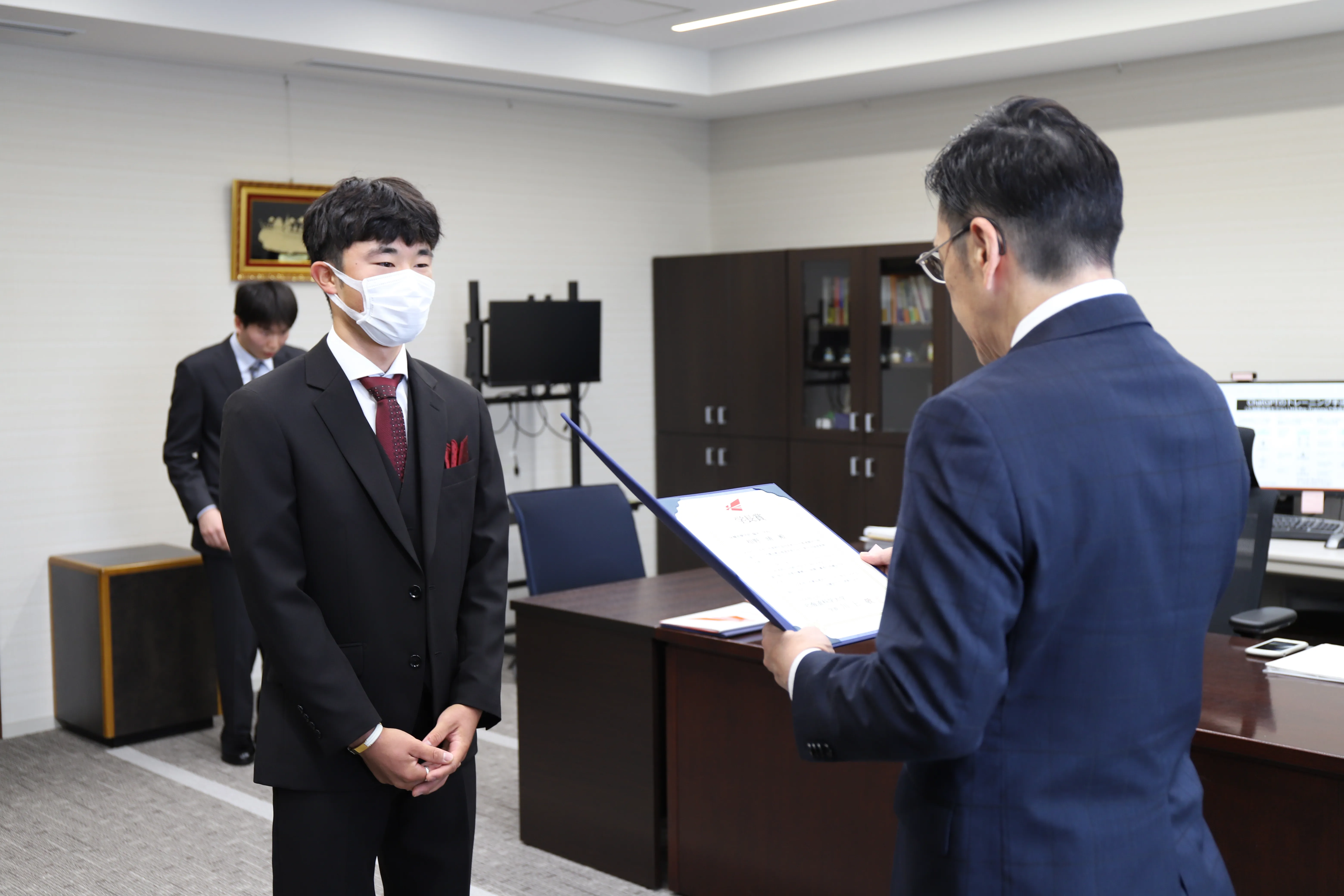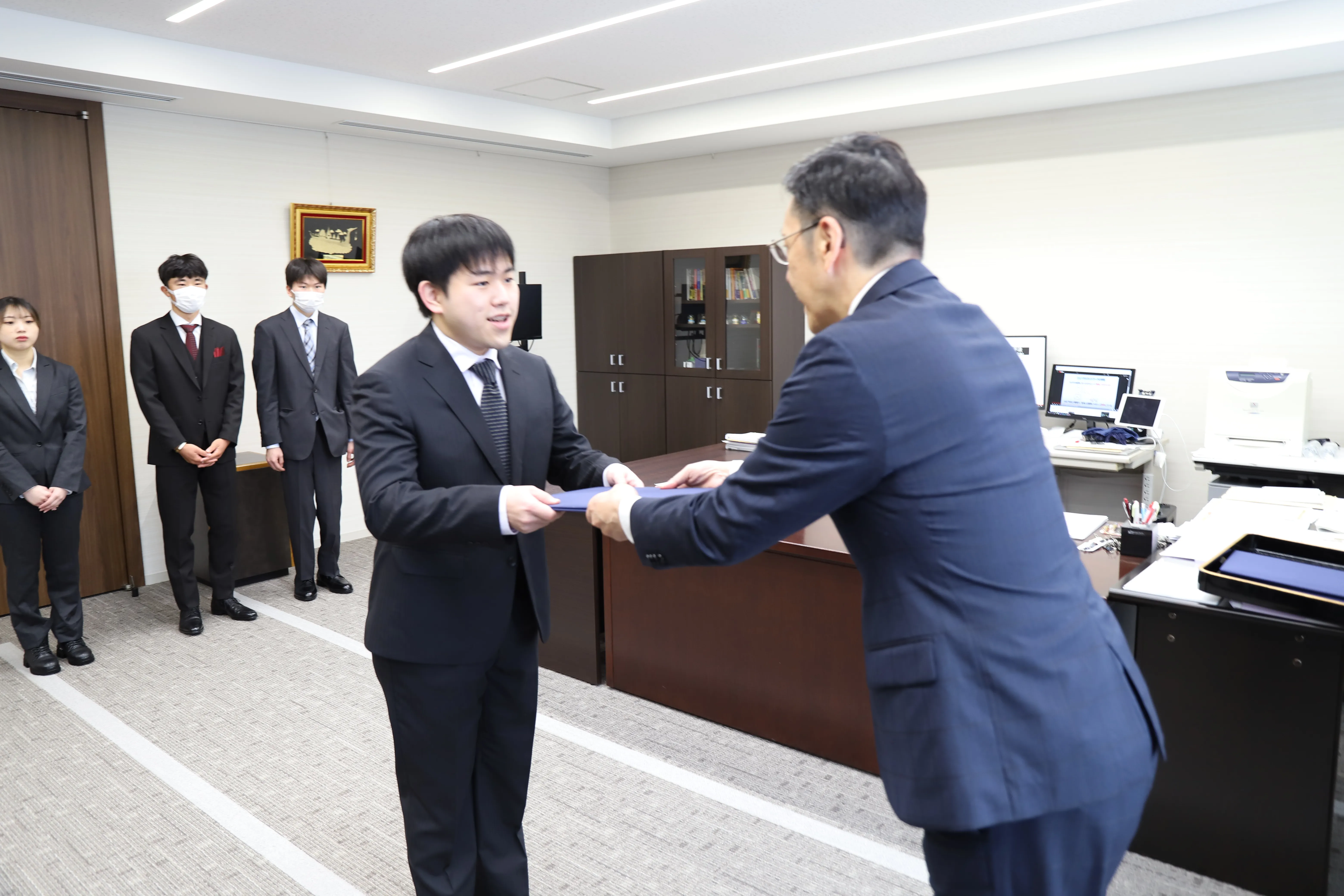 2024年2月15日(木)、学長室にて、学長賞表彰状授与式(後期)が行われました。